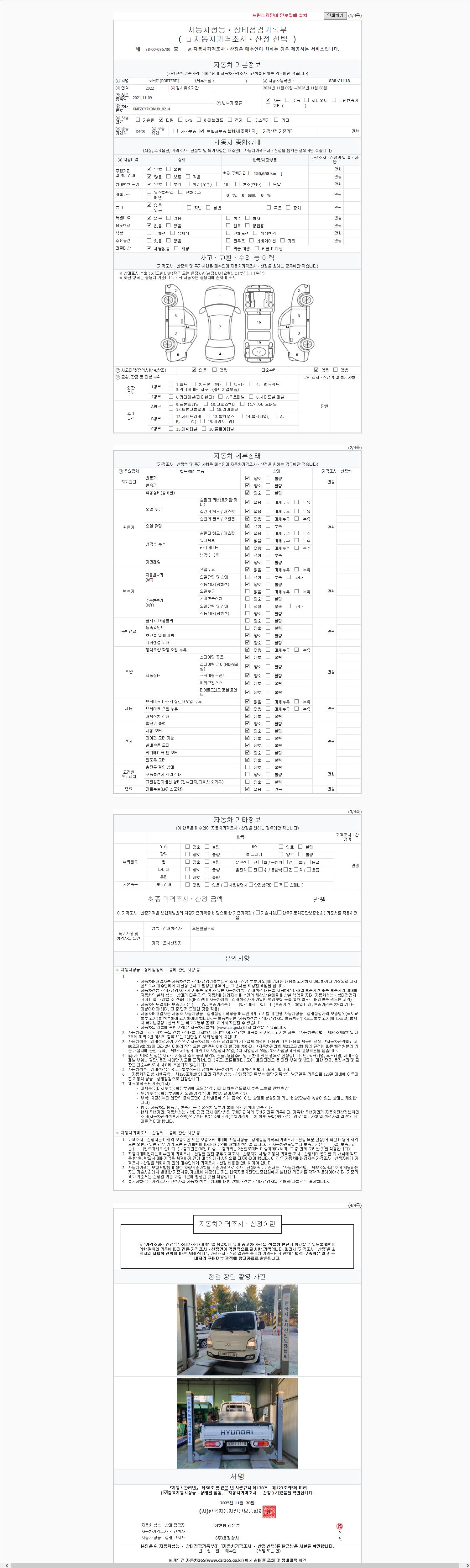 | 주행거리 | 150,658 km | 차량번호 | 838로1118 |