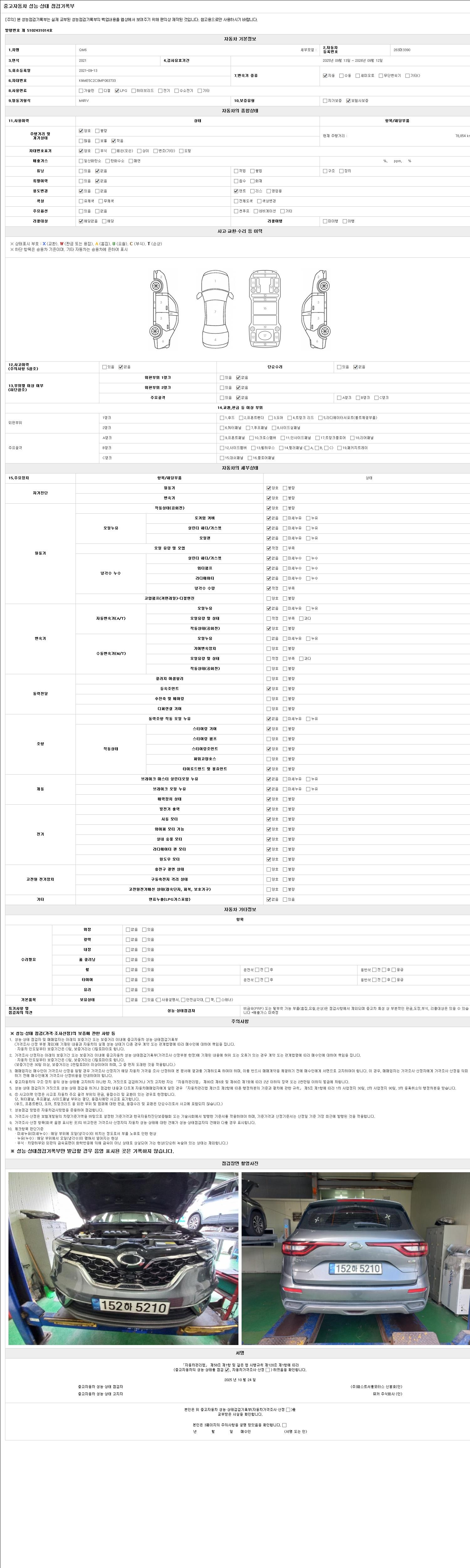 2. 차량 등록증이나 성능점검지 등을 상담자에게 요청및 확인하시고 사전에 미리 점검 하시기를 권유드립니다.