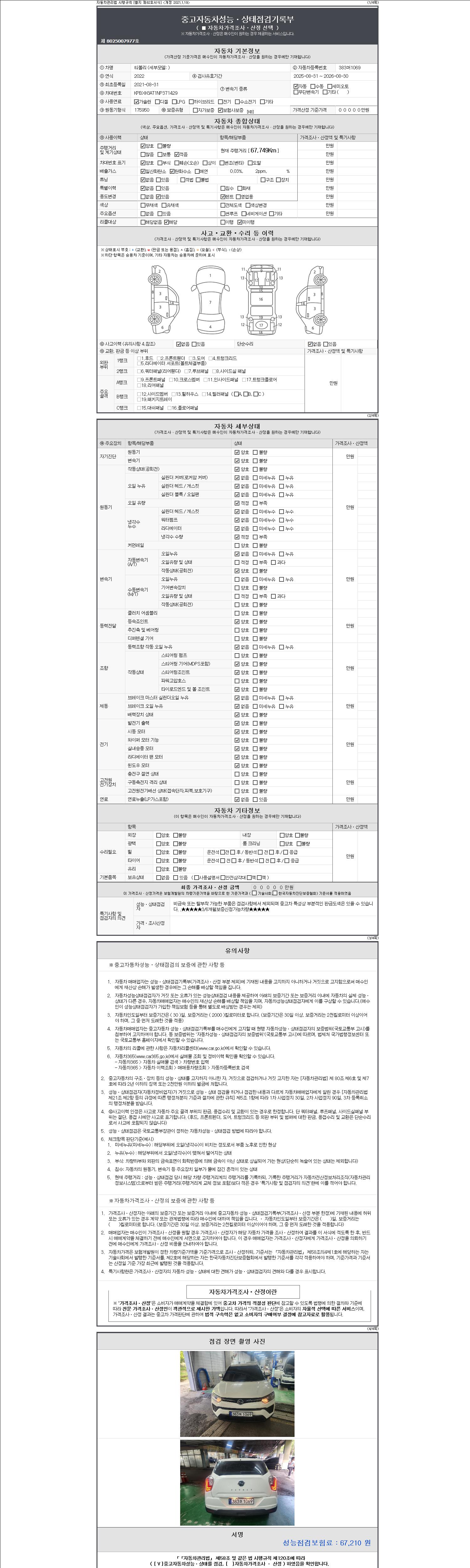 | 주행거리 | 67,749 km | 차량번호 | 383머1069 |