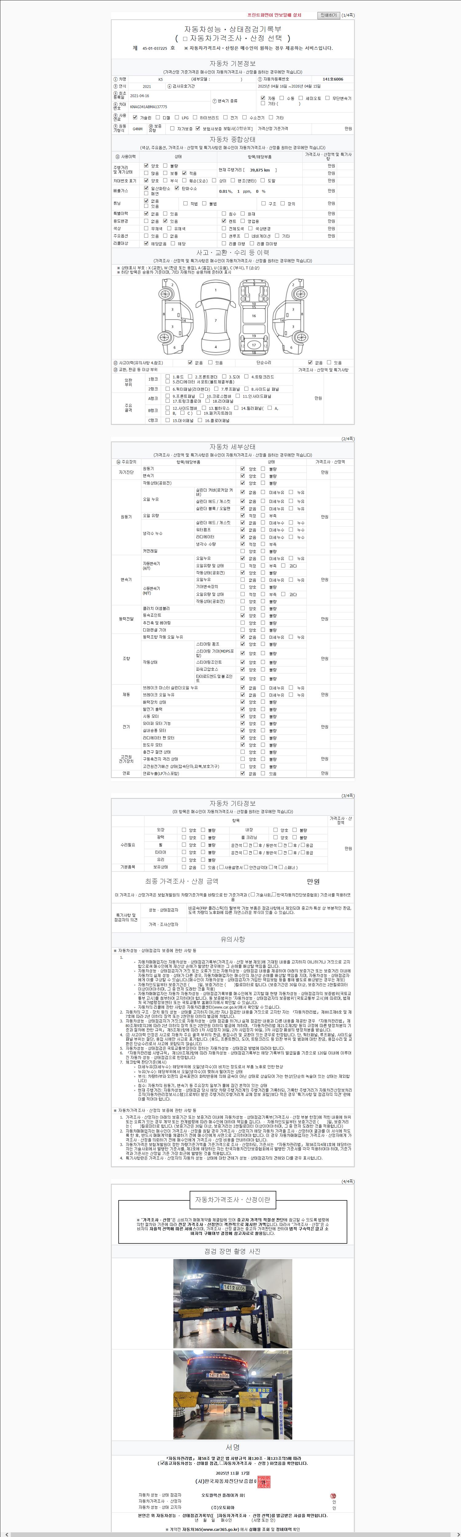 -중고자동차 매매업자를 통해 차량을 구입하실 경우 반드시 "중고자동차 성능, 상태점검 기록부"를 교뷰 받으셔야 하며, 매매업자는 반드시 의무 교부 하여야 압니다.