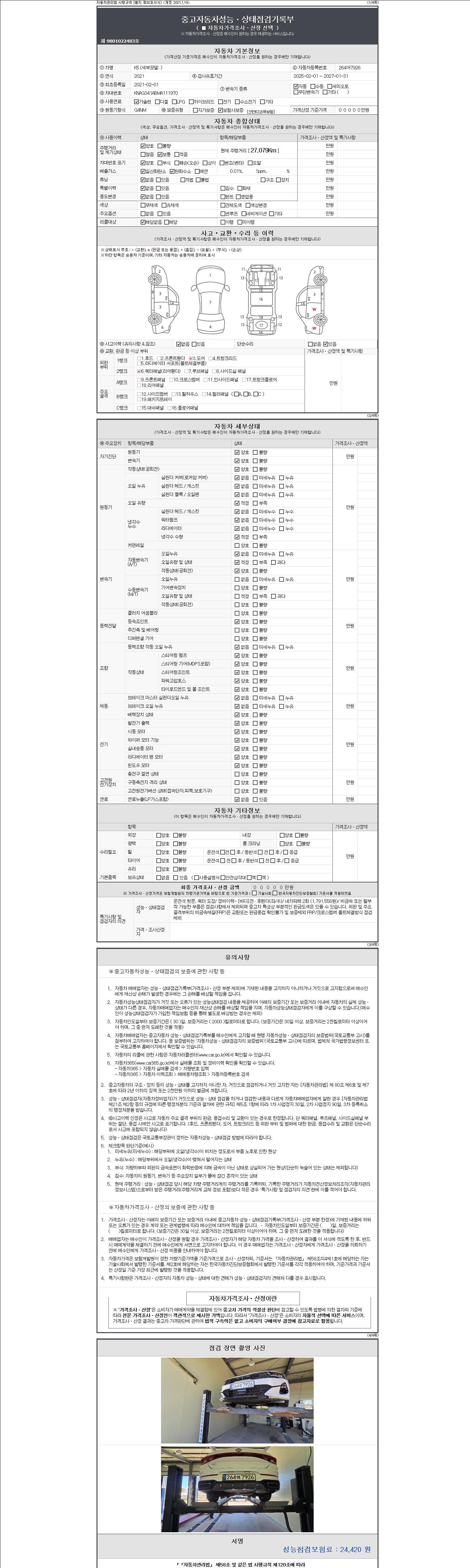 2. 차량 등록증이나 성능점검지 등을 상담자에게 요청및 확인하시고 사전에 미리 점검 하시기를 권유드립니다.
