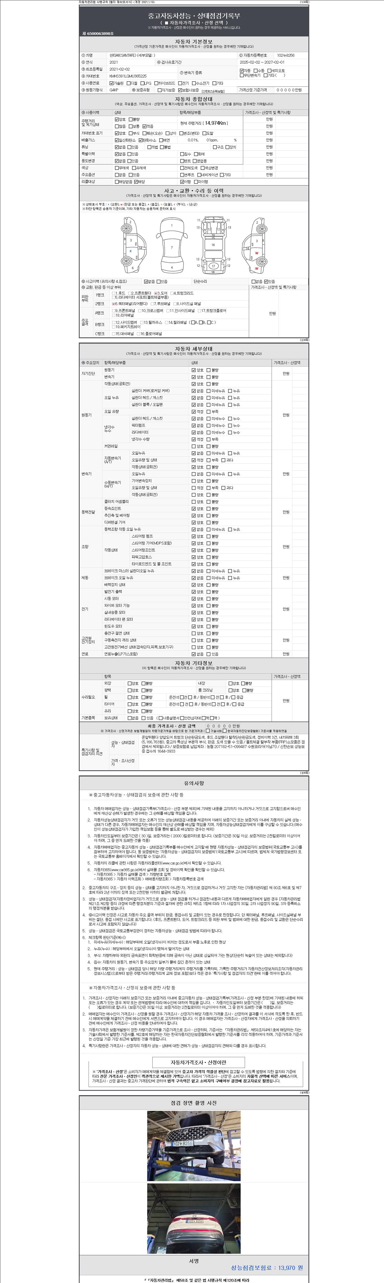 -중고자동차 매매업자를 통해 차량을 구입하실 경우 반드시 "중고자동차 성능, 상태점검 기록부"를 교뷰 받으셔야 하며, 매매업자는 반드시 의무 교부 하여야 압니다.