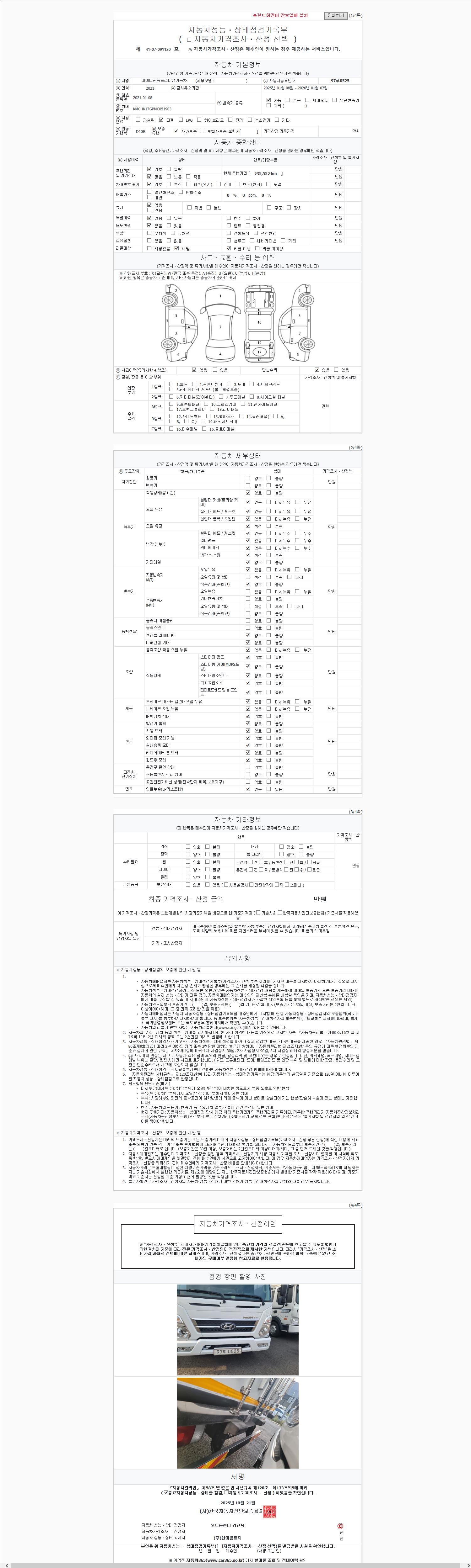 2. 차량 등록증이나 성능점검지 등을 상담자에게 요청및 확인하시고 사전에 미리 점검 하시기를 권유드립니다.