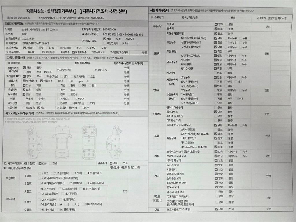 | 주행거리 | 81,147 km | 차량번호 | 286버6958 |