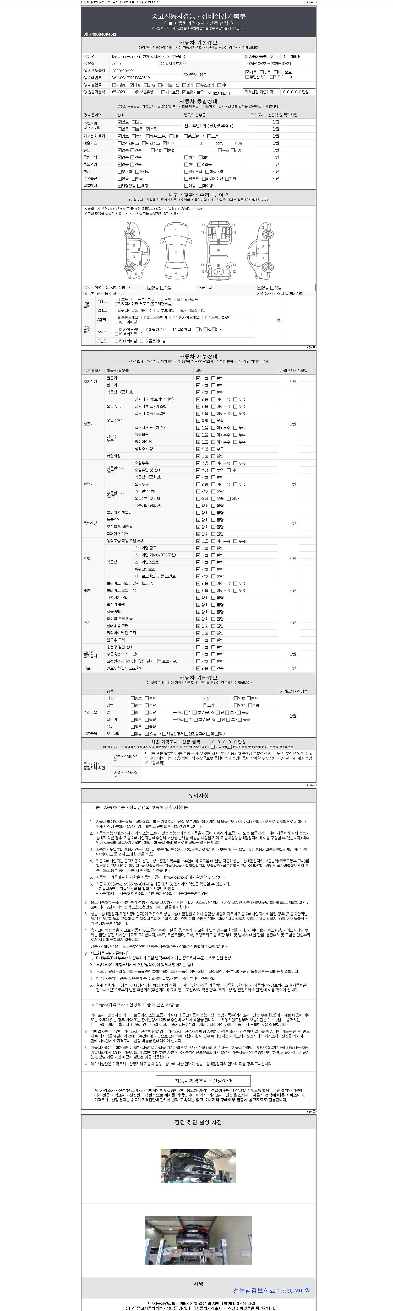 자동차관리법 시행규칙 제120조의 규정에 따라 별지 제 82호서식 《중고자동차 성능, 상태점검 기록부》를 발행한 성능, 상태점검자 및 매매자는 아래의 보증기간 또는 보증거리 이내의 중고자동차, 성능점검 기록부에 기재된 내용과 자동차의 실제 성능, 상태가 다른 경우 계약 또는 관계법령에 따라 매수인에 대하여 책임을 집니다.