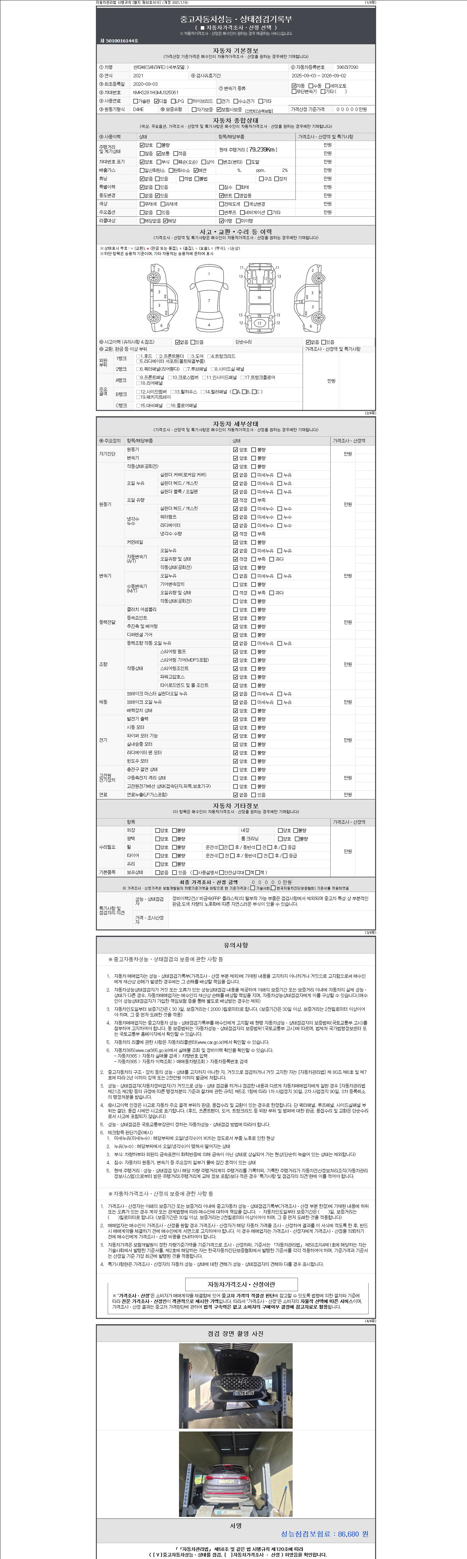 -중고자동차 매매업자를 통해 차량을 구입하실 경우 반드시 "중고자동차 성능, 상태점검 기록부"를 교뷰 받으셔야 하며, 매매업자는 반드시 의무 교부 하여야 압니다.