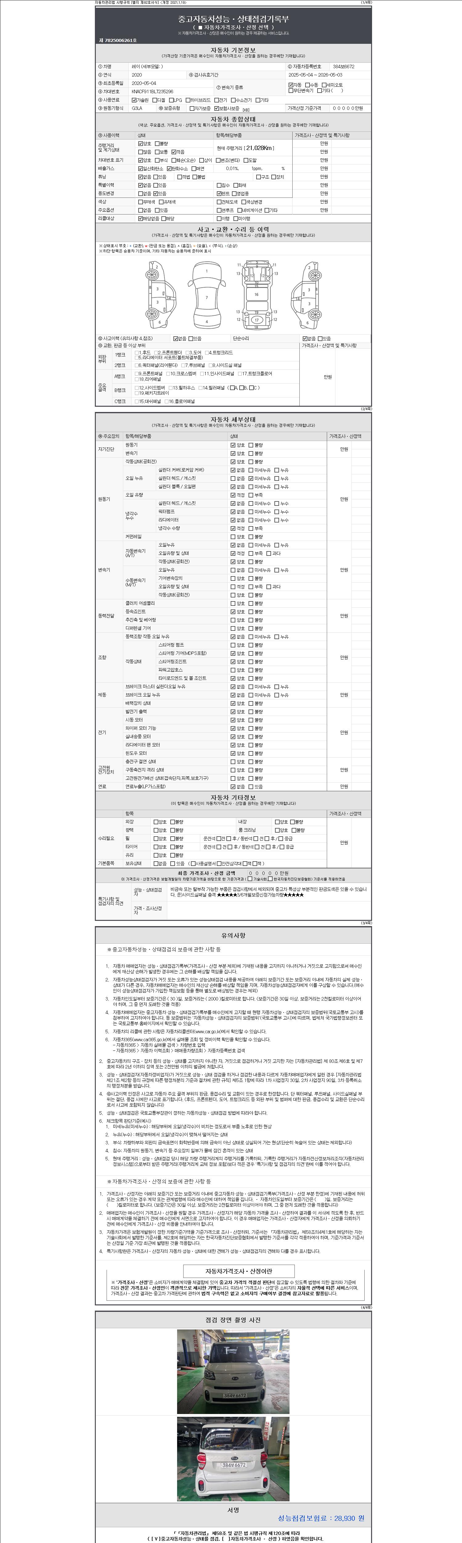 -중고자동차 매매업자를 통해 차량을 구입하실 경우 반드시 "중고자동차 성능, 상태점검 기록부"를 교뷰 받으셔야 하며, 매매업자는 반드시 의무 교부 하여야 압니다.