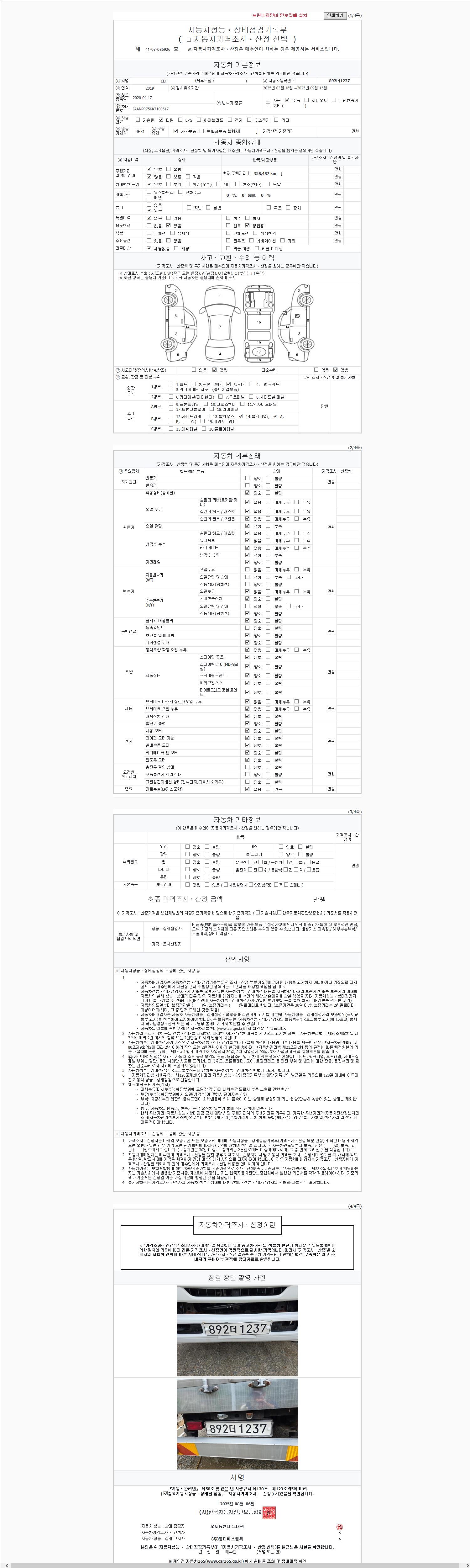 | 주행거리 | 358,091 km | 차량번호 | 892더1237 |