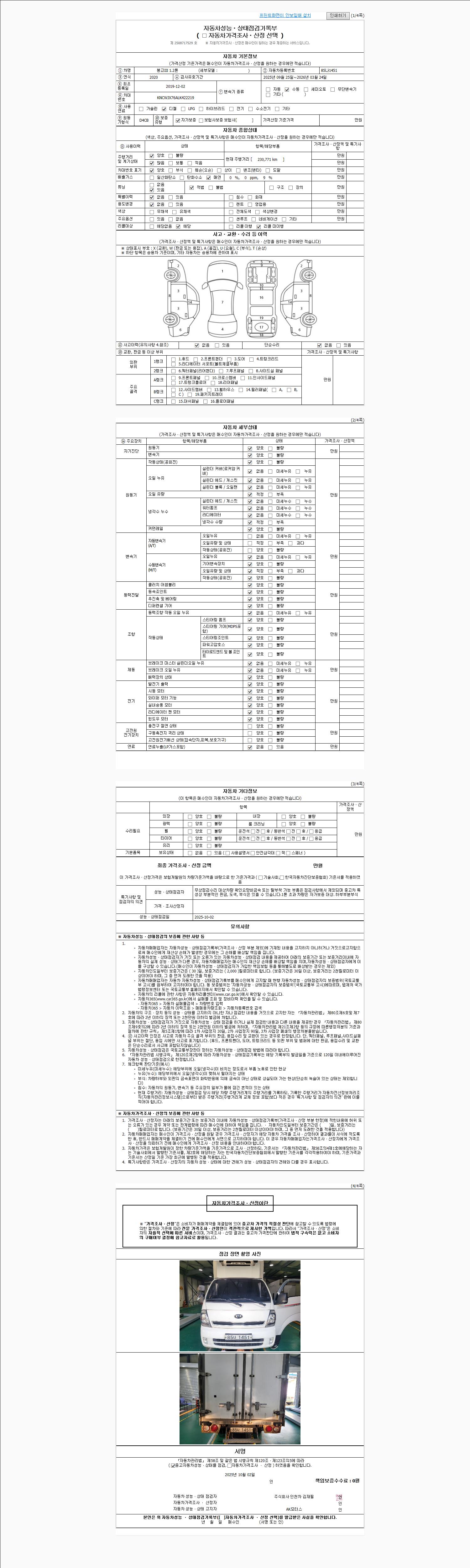 2. 차량 등록증이나 성능점검지 등을 상담자에게 요청및 확인하시고 사전에 미리 점검 하시기를 권유드립니다.