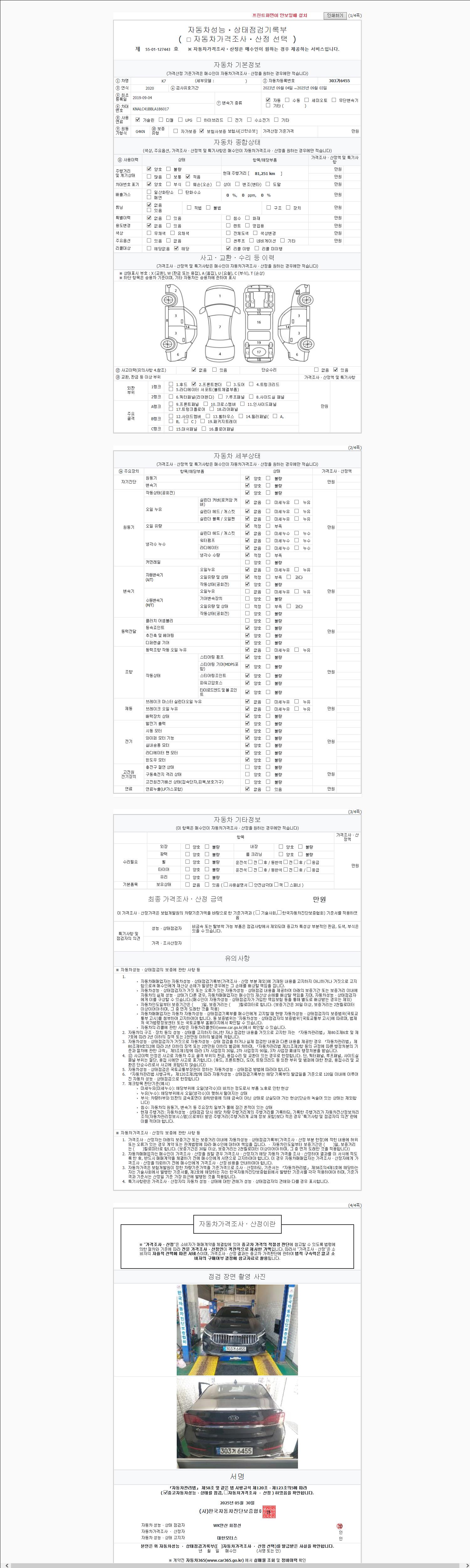 2. 차량 등록증이나 성능점검지 등을 상담자에게 요청및 확인하시고 사전에 미리 점검 하시기를 권유드립니다.