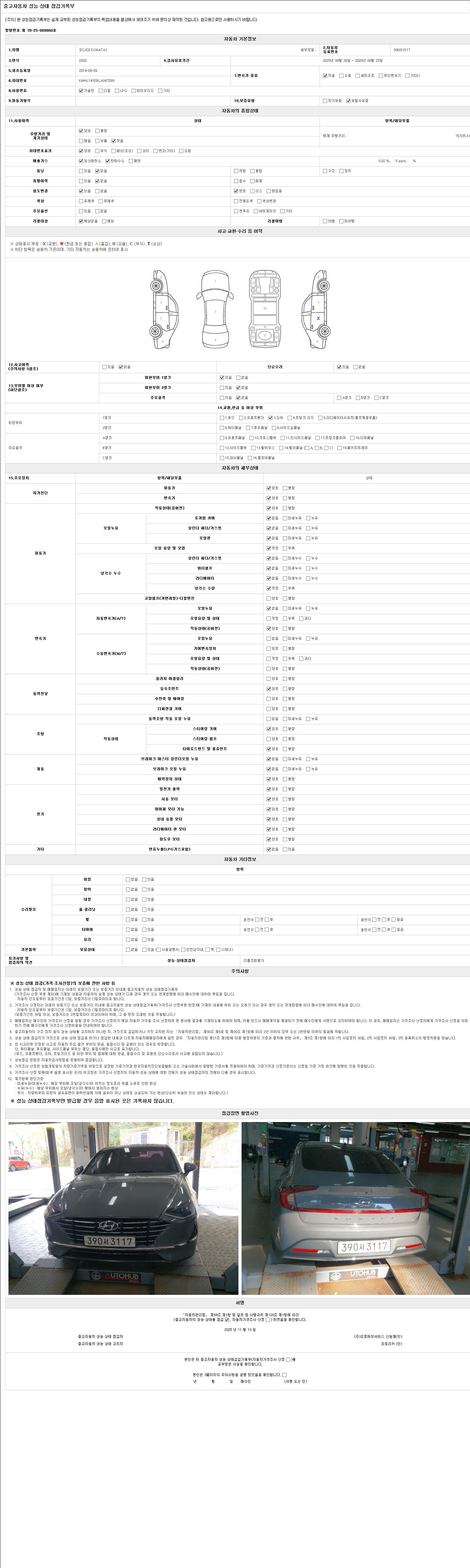 | 주행거리 | 70,535 km | 차량번호 | 390서3117 |