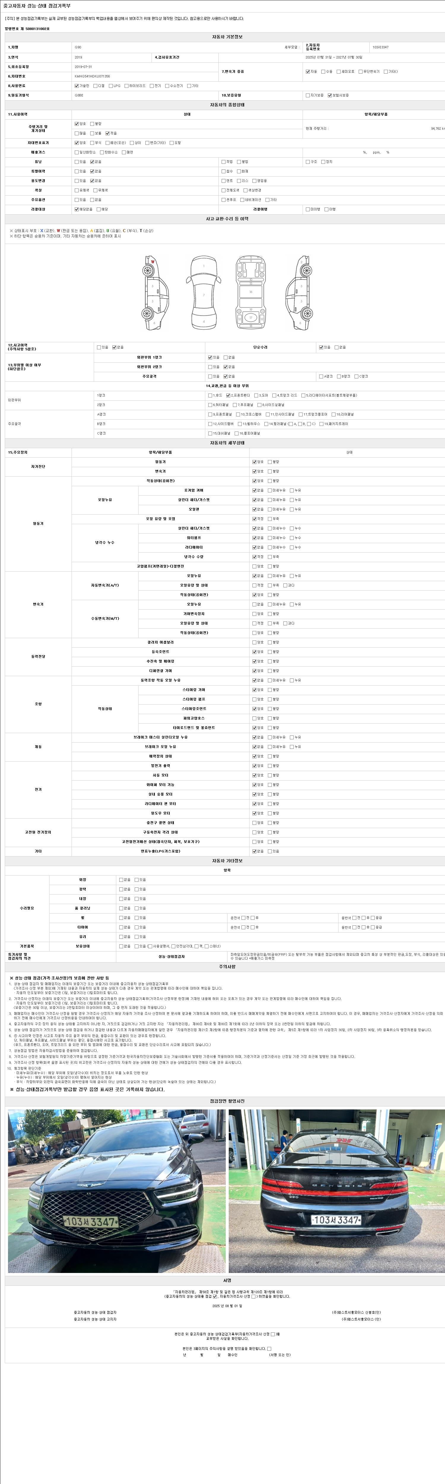 2. 차량 등록증이나 성능점검지 등을 상담자에게 요청및 확인하시고 사전에 미리 점검 하시기를 권유드립니다.