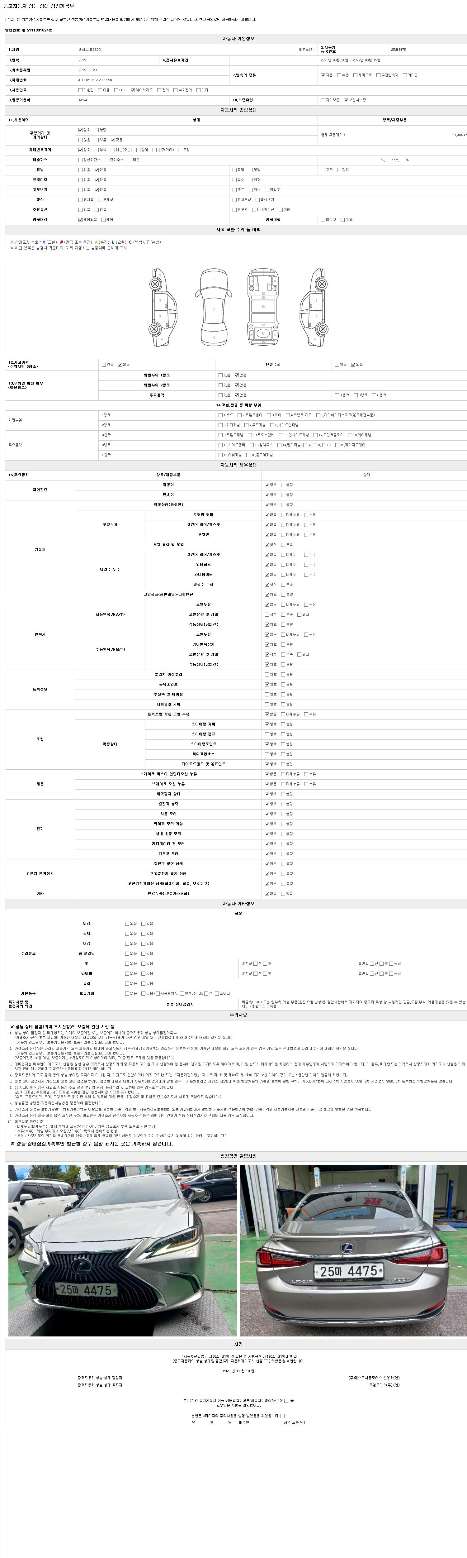사고유무 성능기록부 참조 제시번호 제 2025037065 호
