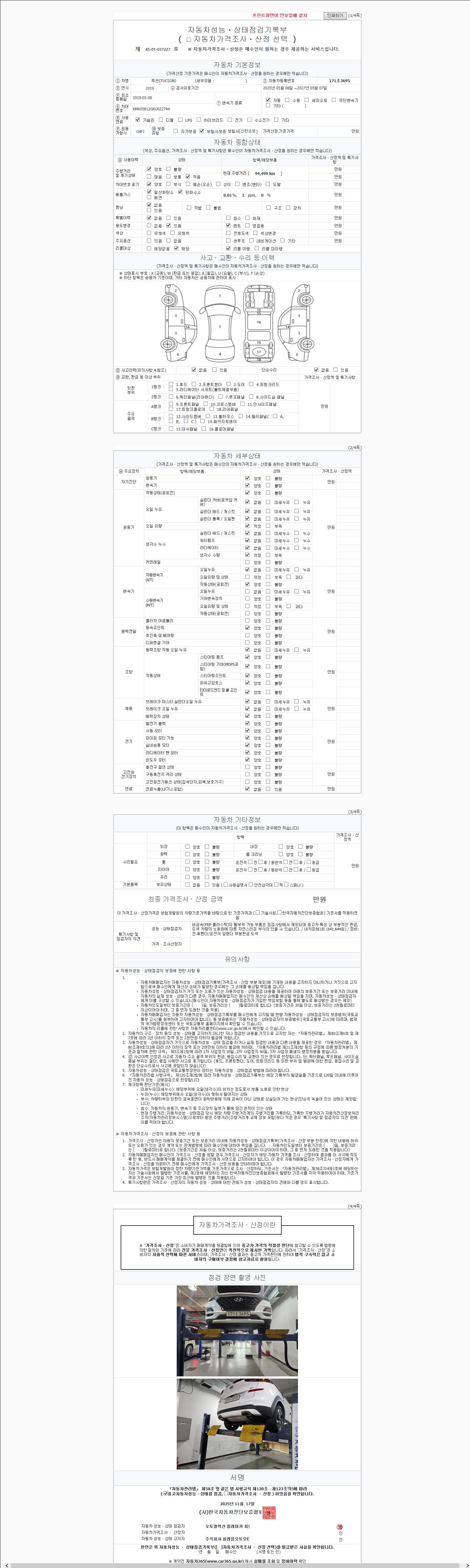 | 주행거리 | 94,499 km | 차량번호 | 171조3695 |