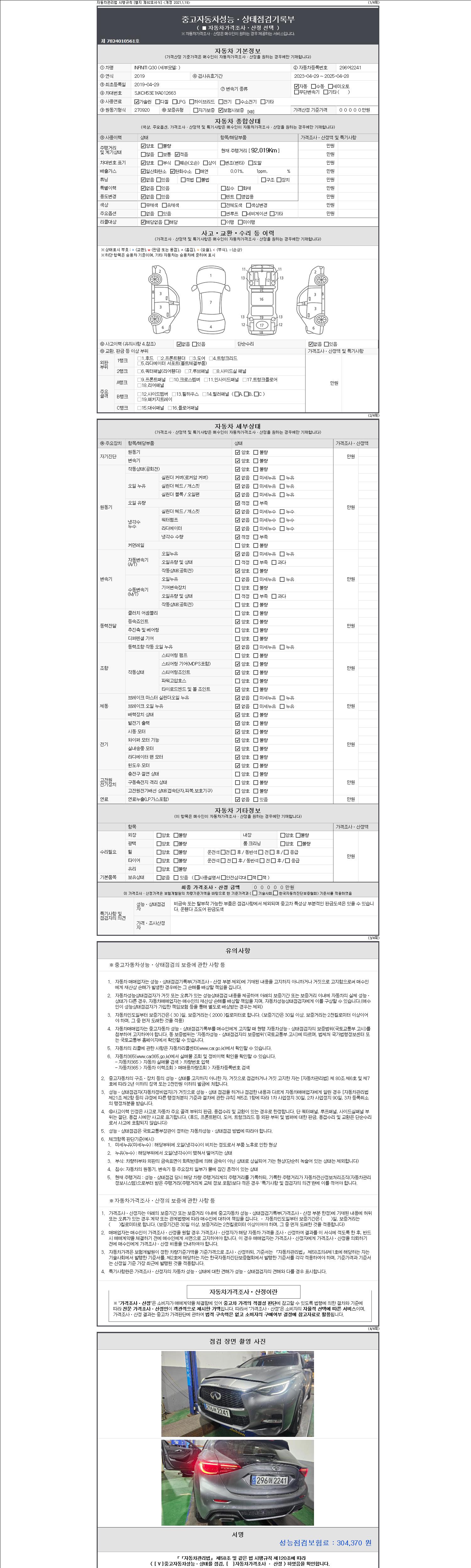 | 주행거리 | 92,019 km | 차량번호 | 296어2241 |