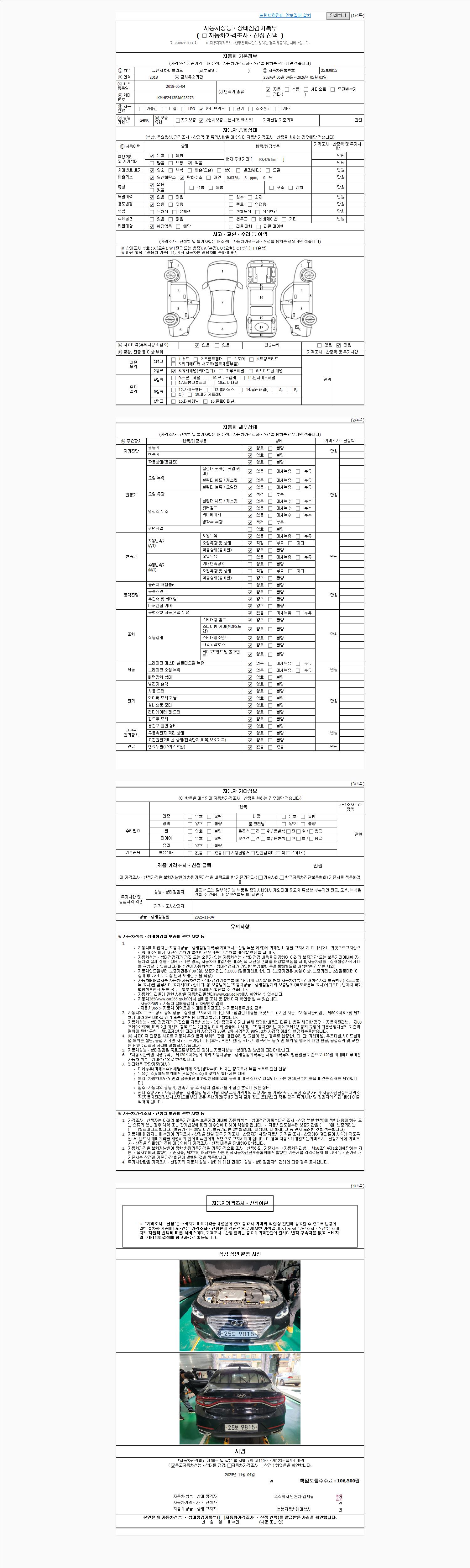 | 사고유무 | 성능기록부 참조 | 제시번호 | 제 2025060402 호 |