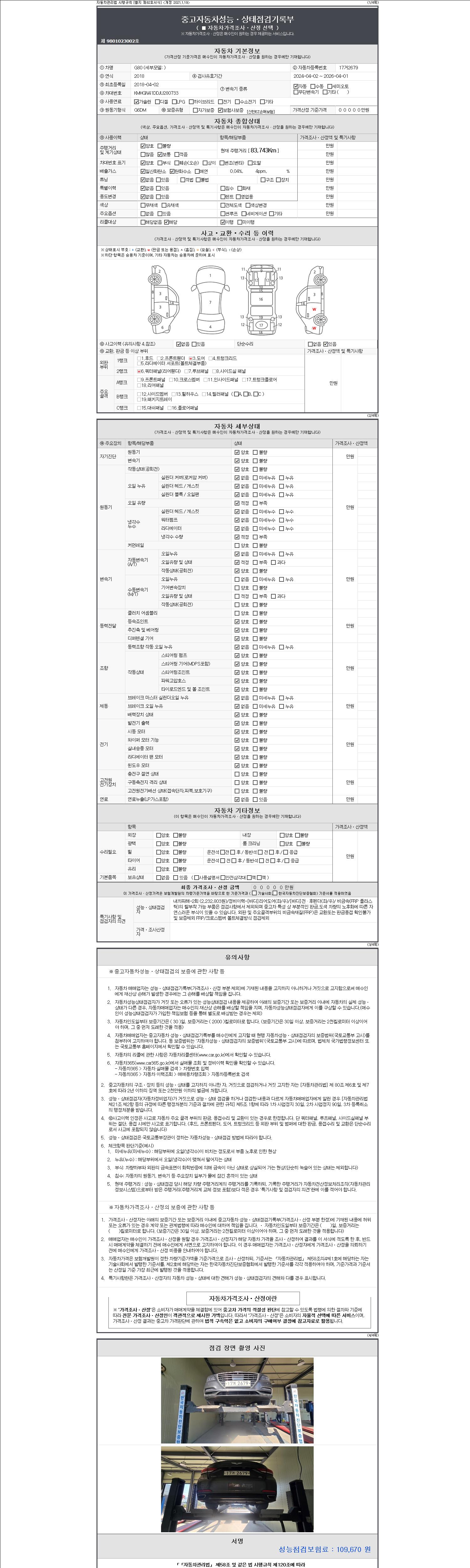 2. 차량 등록증이나 성능점검지 등을 상담자에게 요청및 확인하시고 사전에 미리 점검 하시기를 권유드립니다.