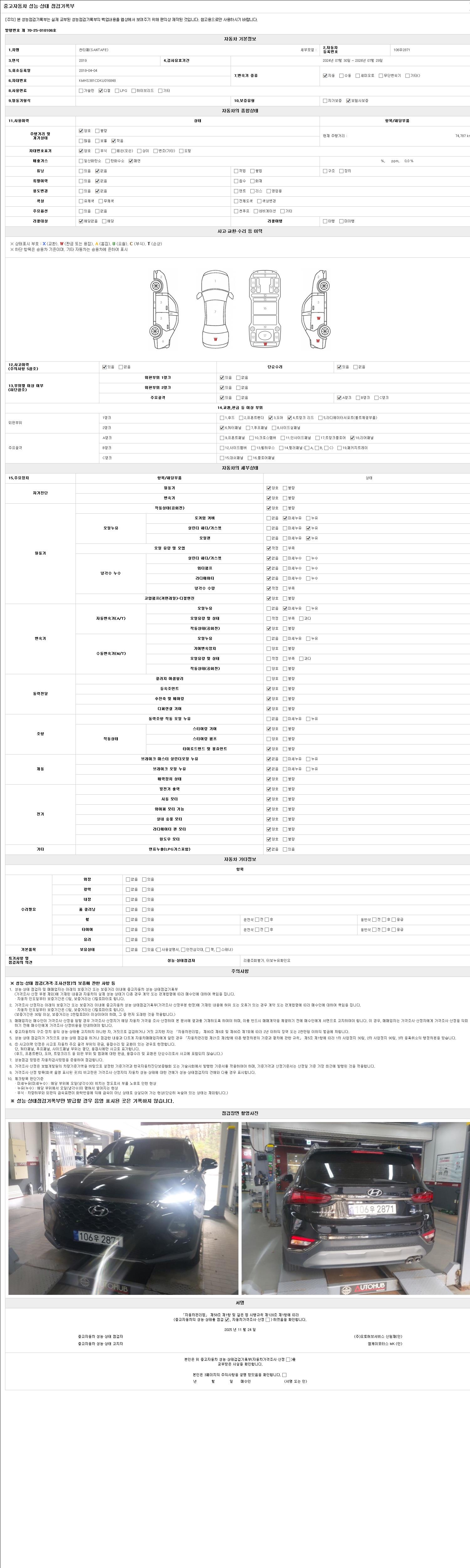 | 주행거리 | 74,787 km | 차량번호 | 106우2871 |