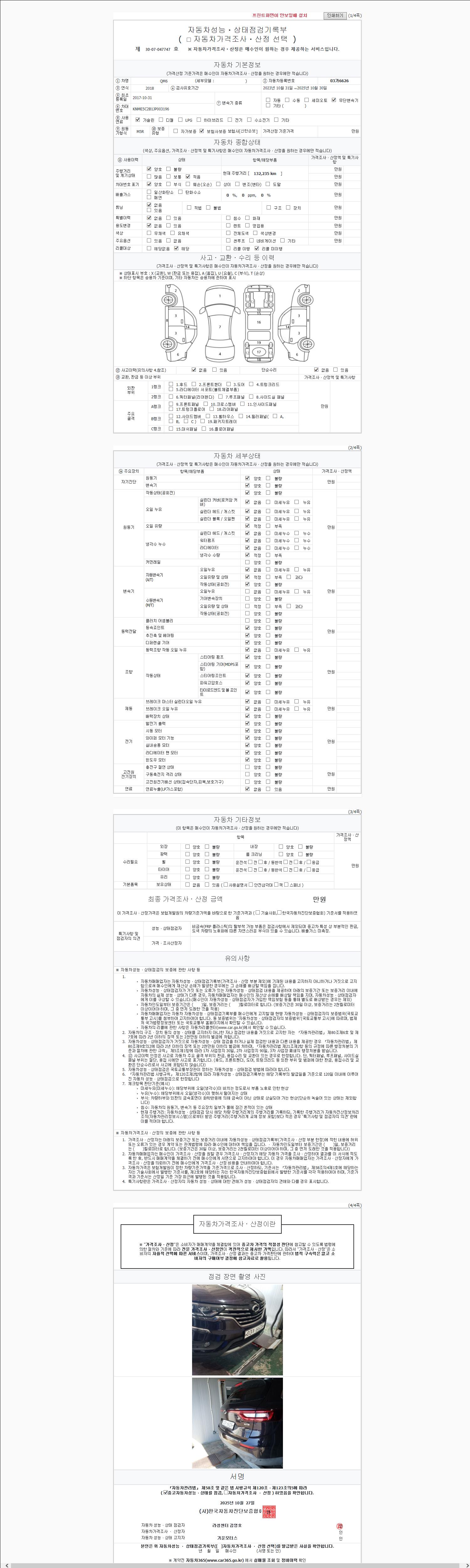 2. 차량 등록증이나 성능점검지 등을 상담자에게 요청및 확인하시고 사전에 미리 점검 하시기를 권유드립니다.