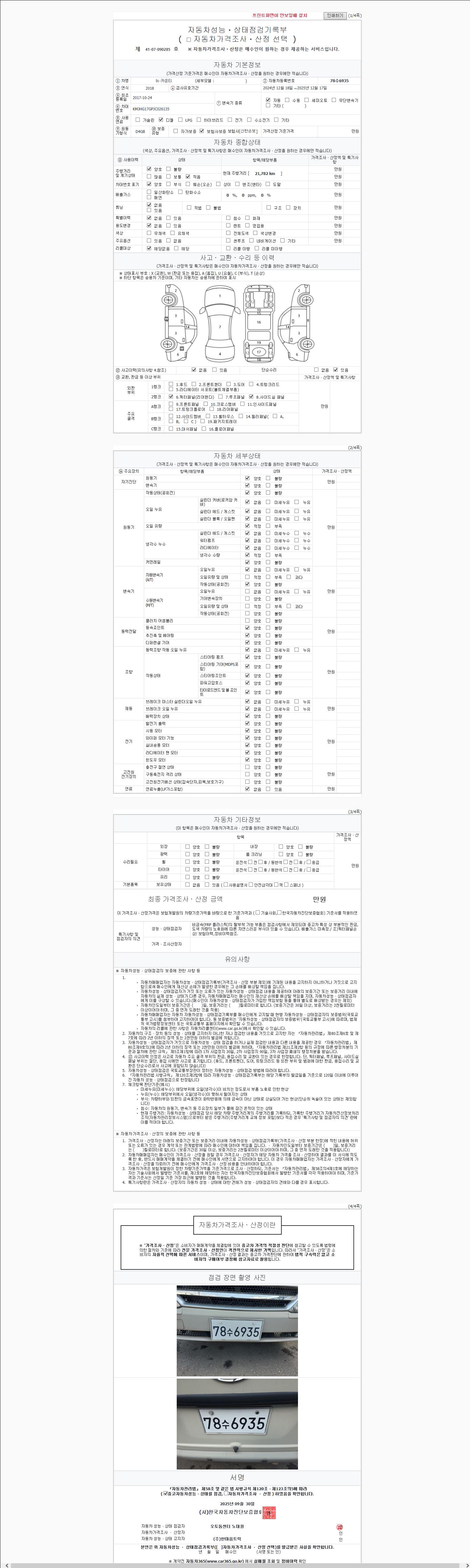 2. 차량 등록증이나 성능점검지 등을 상담자에게 요청및 확인하시고 사전에 미리 점검 하시기를 권유드립니다.