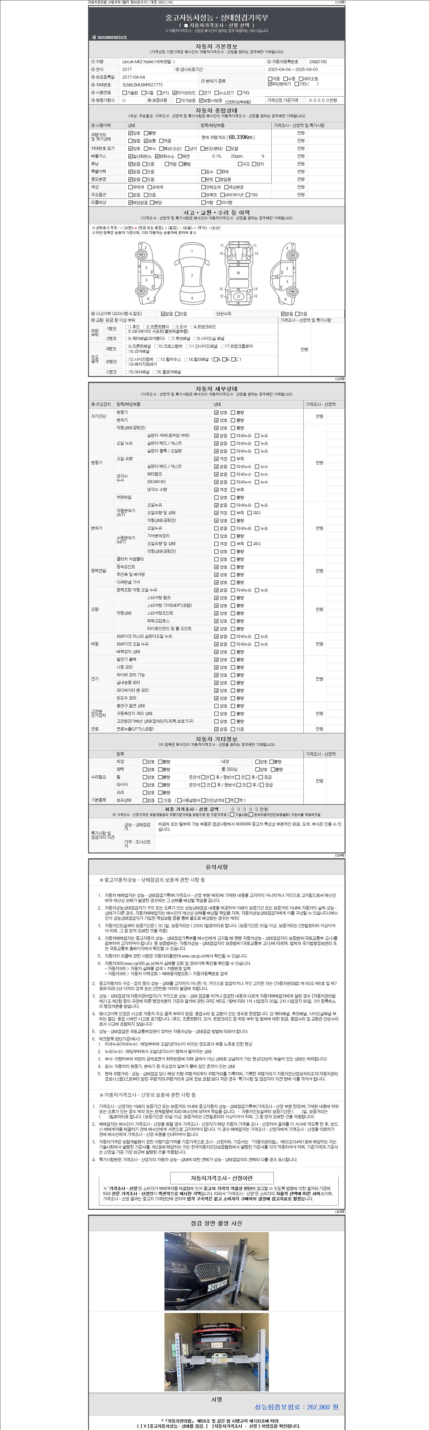 2. 차량 등록증이나 성능점검지 등을 상담자에게 요청및 확인하시고 사전에 미리 점검 하시기를 권유드립니다.