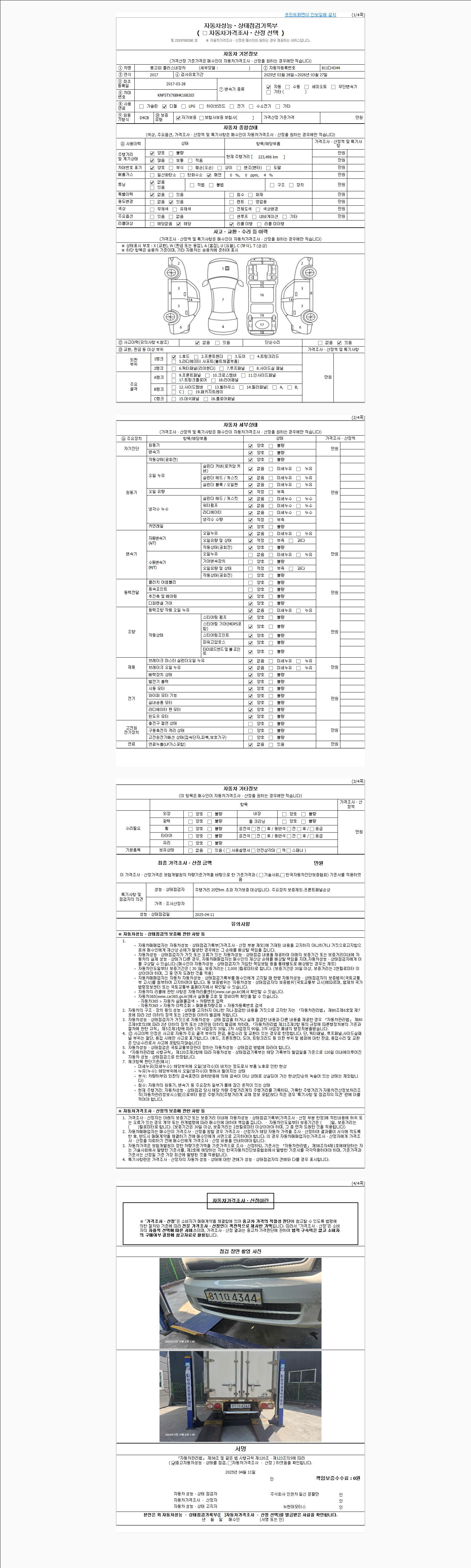2. 차량 등록증이나 성능점검지 등을 상담자에게 요청및 확인하시고 사전에 미리 점검 하시기를 권유드립니다.