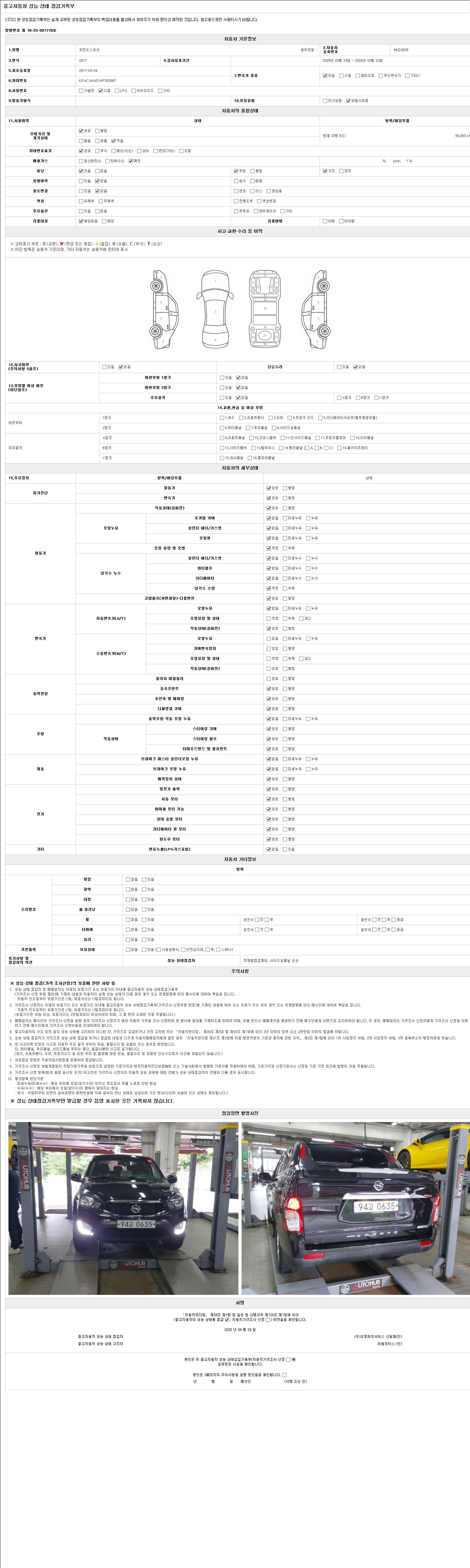 2. 차량 등록증이나 성능점검지 등을 상담자에게 요청및 확인하시고 사전에 미리 점검 하시기를 권유드립니다.