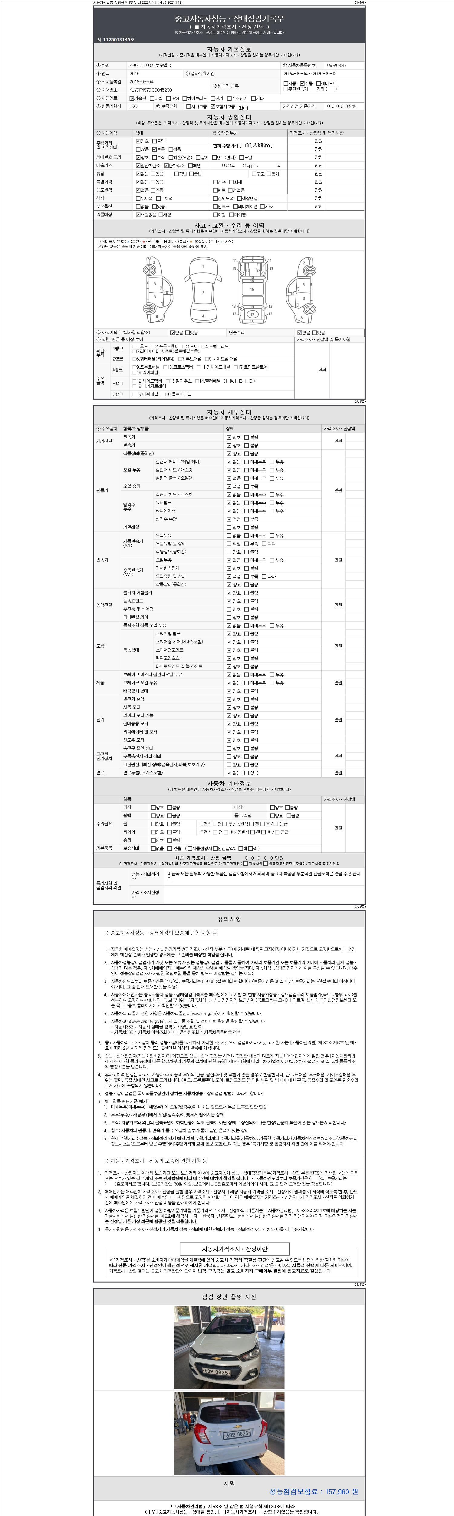 | 주행거리 | 160,238 km | 차량번호 | 68모0825 |