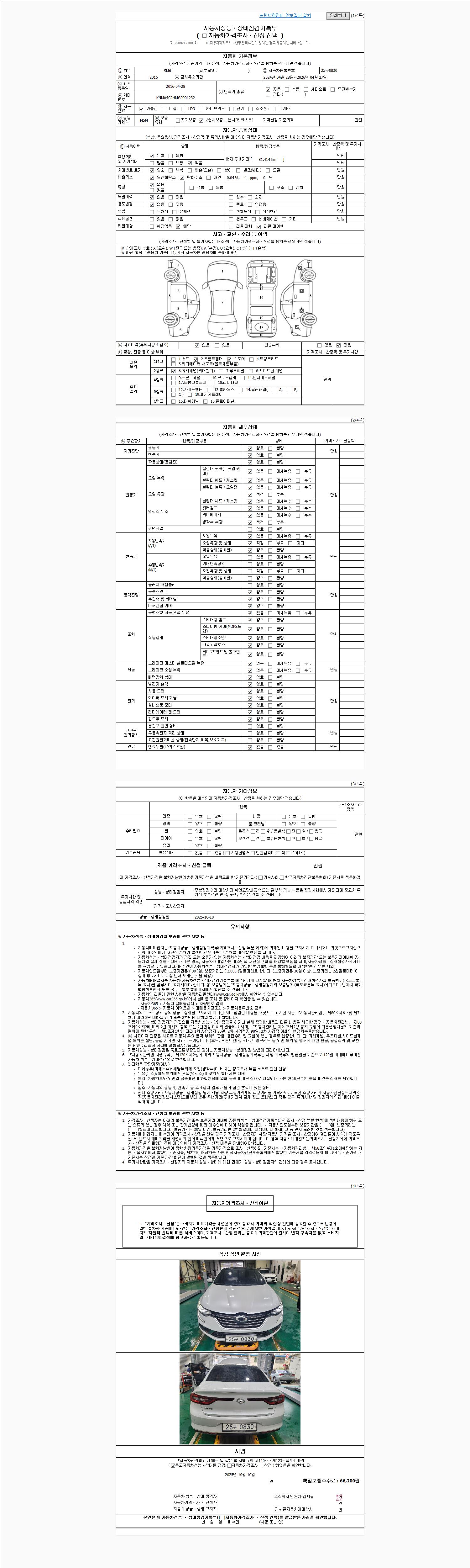 사고유무 성능기록부 참조 제시번호 제 2025055140 호