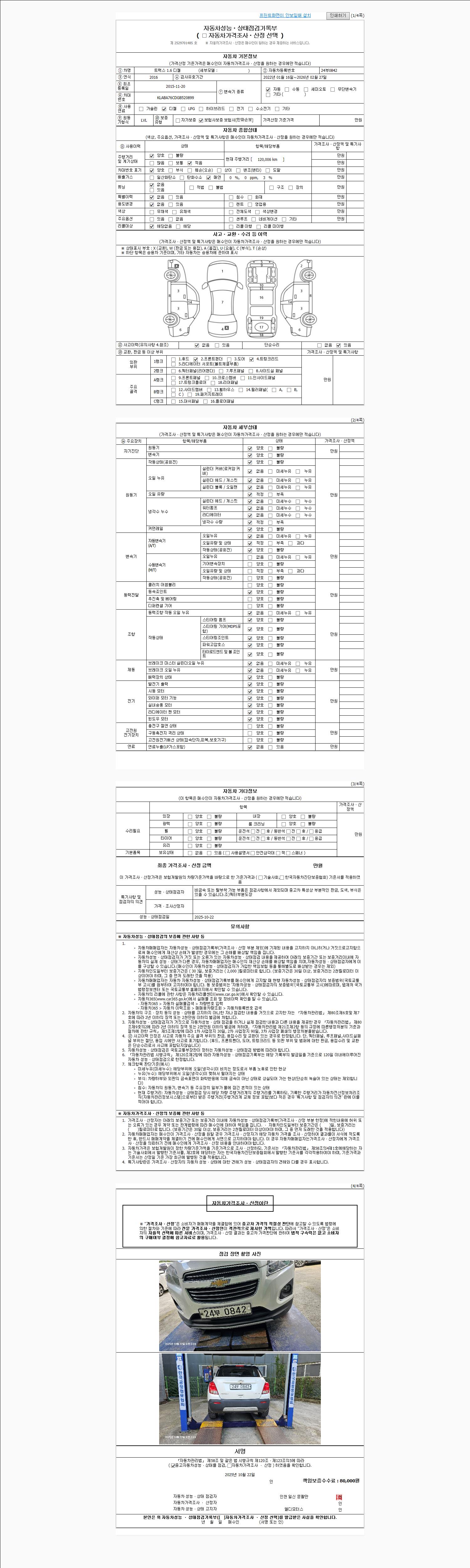 사고유무 성능기록부 참조 제시번호 제 2025055907 호
