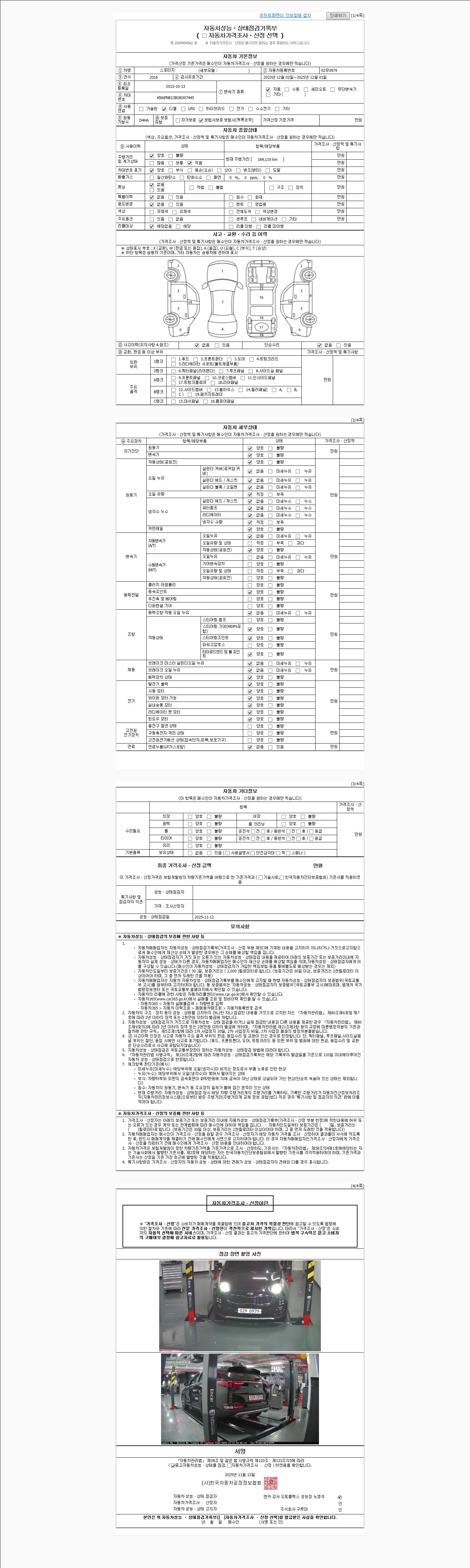 사고유무 성능기록부 참조 제시번호 제 2025090147 호