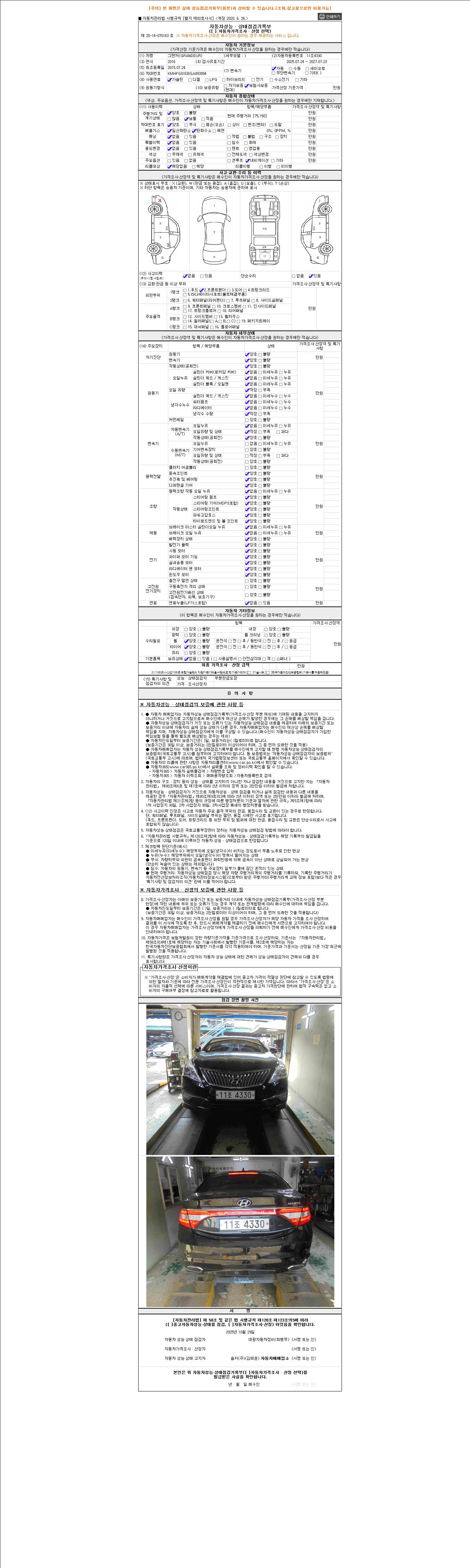 2. 차량 등록증이나 성능점검지 등을 상담자에게 요청및 확인하시고 사전에 미리 점검 하시기를 권유드립니다.