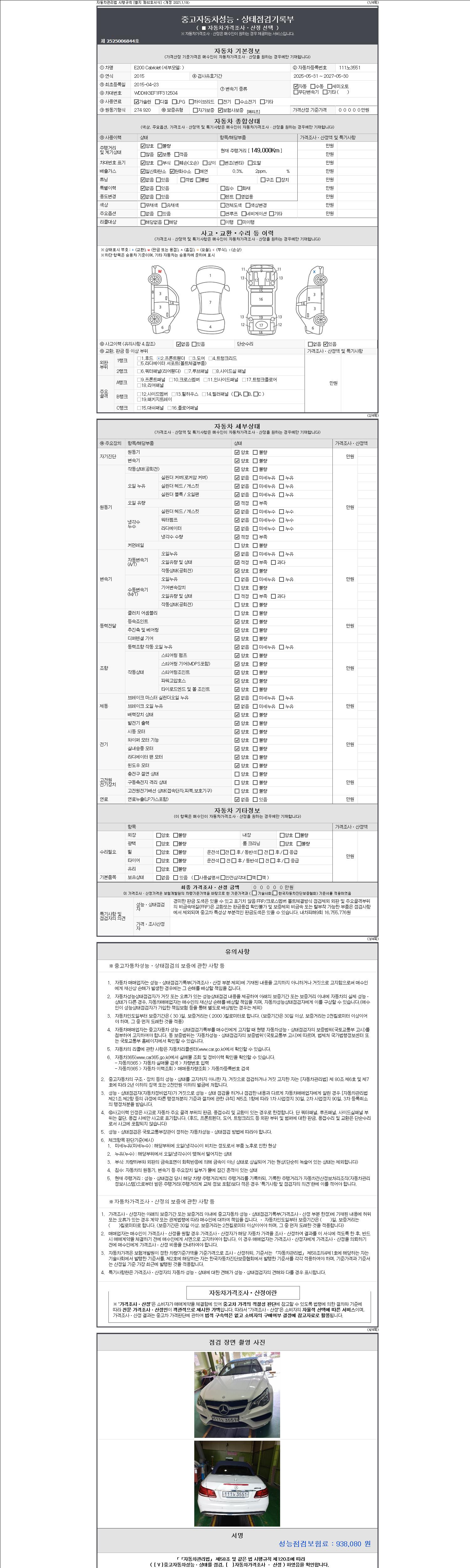 2. 차량 등록증이나 성능점검지 등을 상담자에게 요청및 확인하시고 사전에 미리 점검 하시기를 권유드립니다.