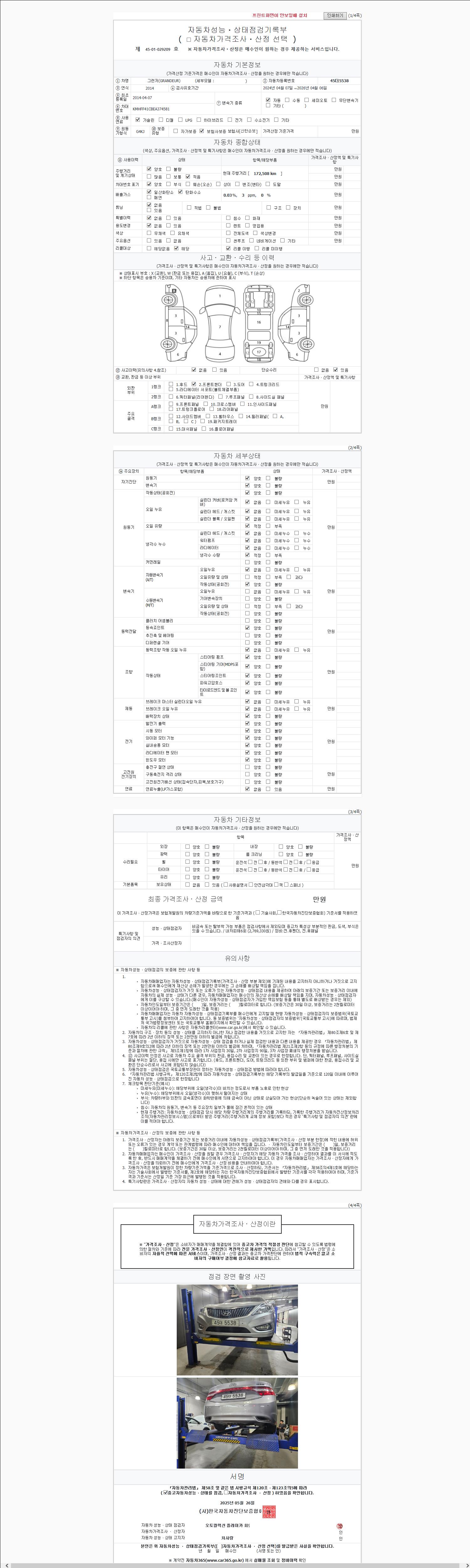 | 주행거리 | 172,508 km | 차량번호 | 45더5538 |