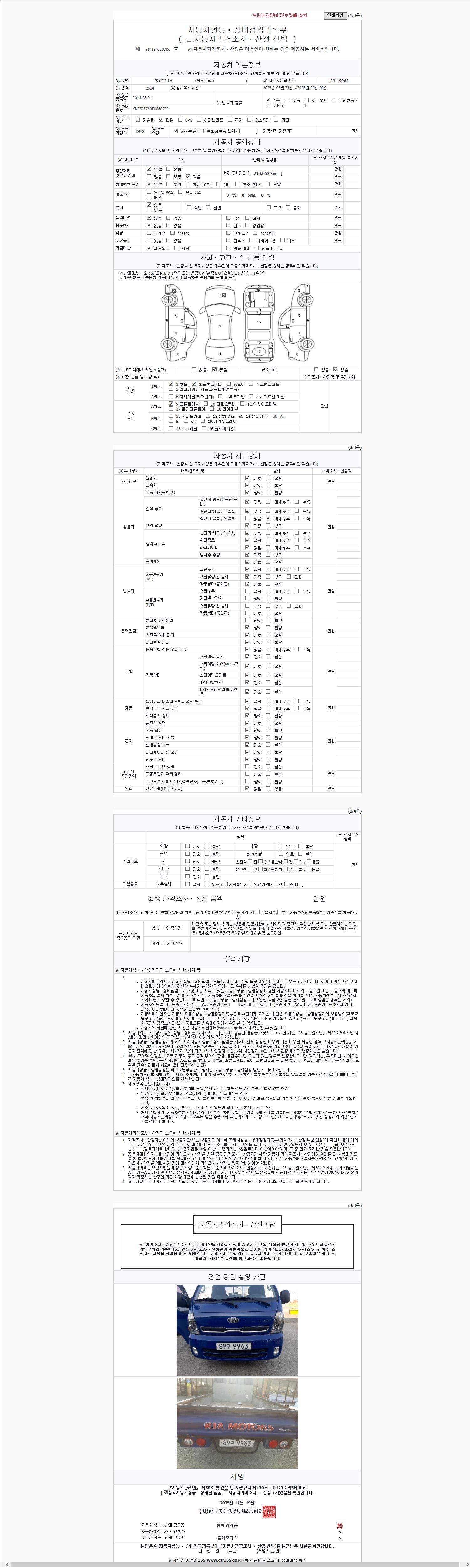| 주행거리 | 210,063 km | 차량번호 | 89구9963 |