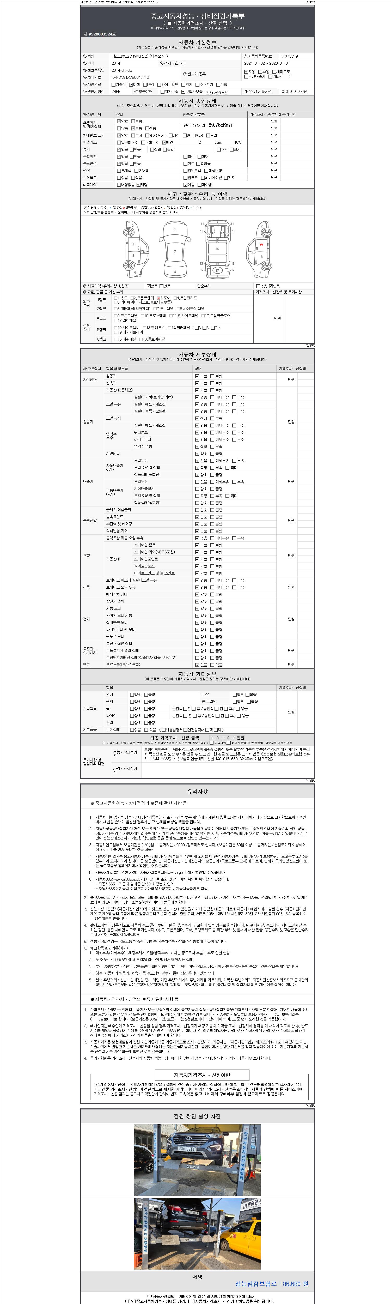 2. 차량 등록증이나 성능점검지 등을 상담자에게 요청및 확인하시고 사전에 미리 점검 하시기를 권유드립니다.