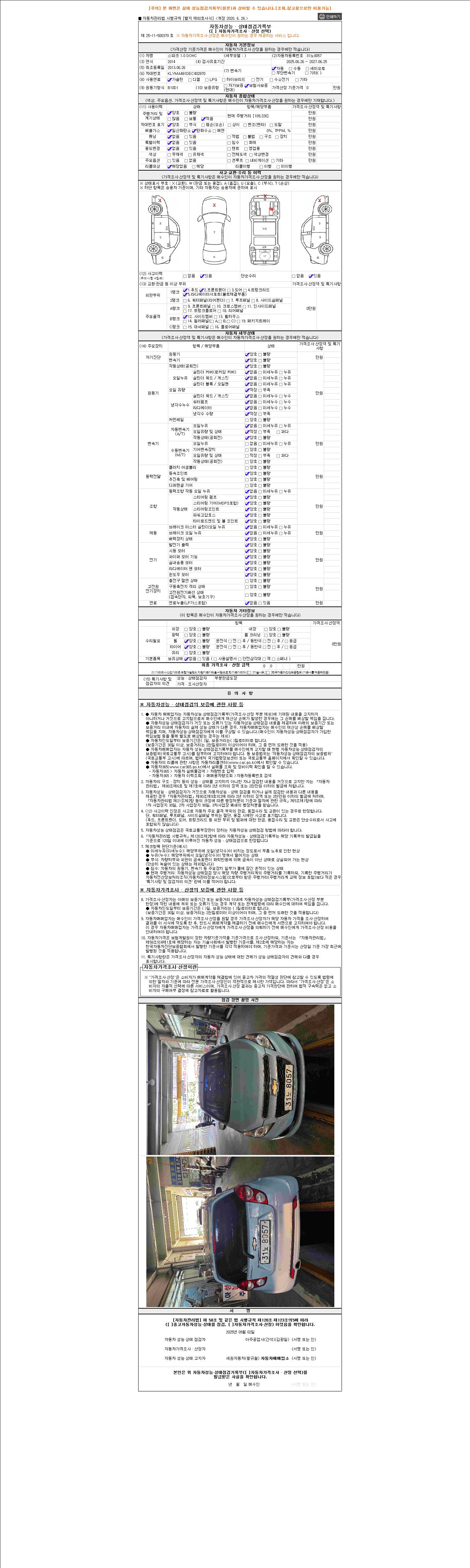 2. 차량 등록증이나 성능점검지 등을 상담자에게 요청및 확인하시고 사전에 미리 점검 하시기를 권유드립니다.