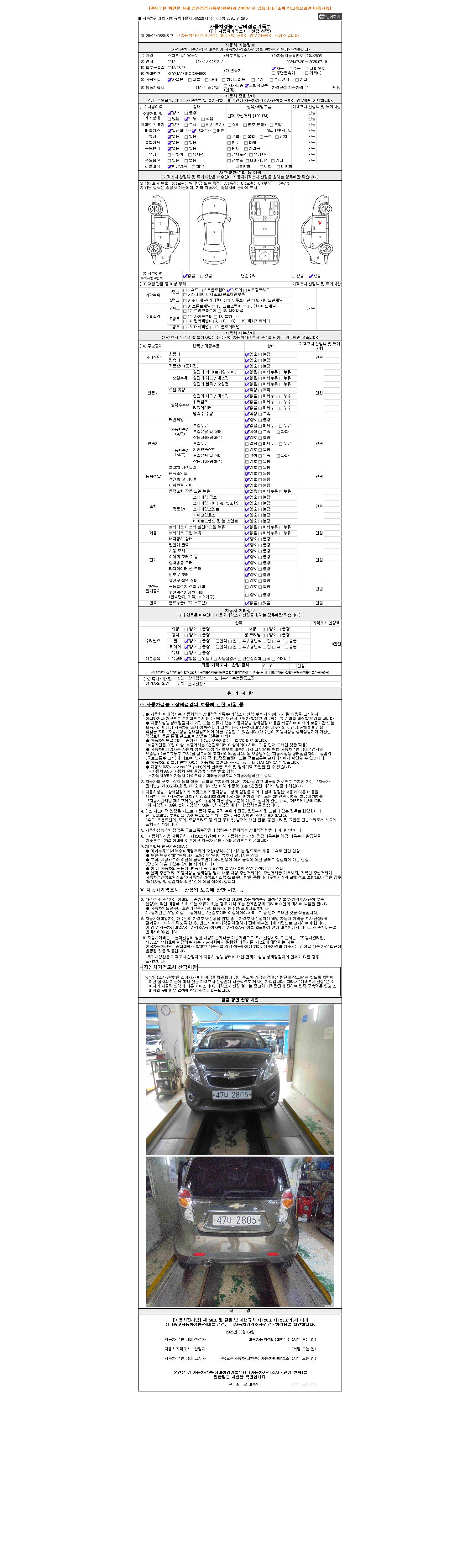 2. 차량 등록증이나 성능점검지 등을 상담자에게 요청및 확인하시고 사전에 미리 점검 하시기를 권유드립니다.