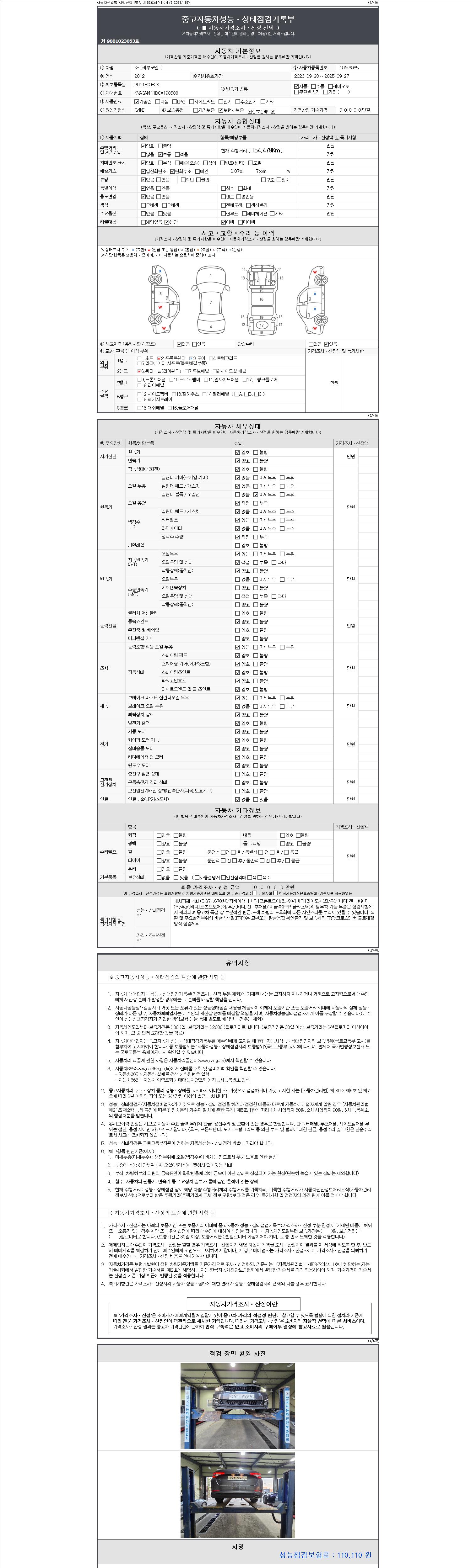 -중고자동차 매매업자를 통해 차량을 구입하실 경우 반드시 "중고자동차 성능, 상태점검 기록부"를 교뷰 받으셔야 하며, 매매업자는 반드시 의무 교부 하여야 압니다.