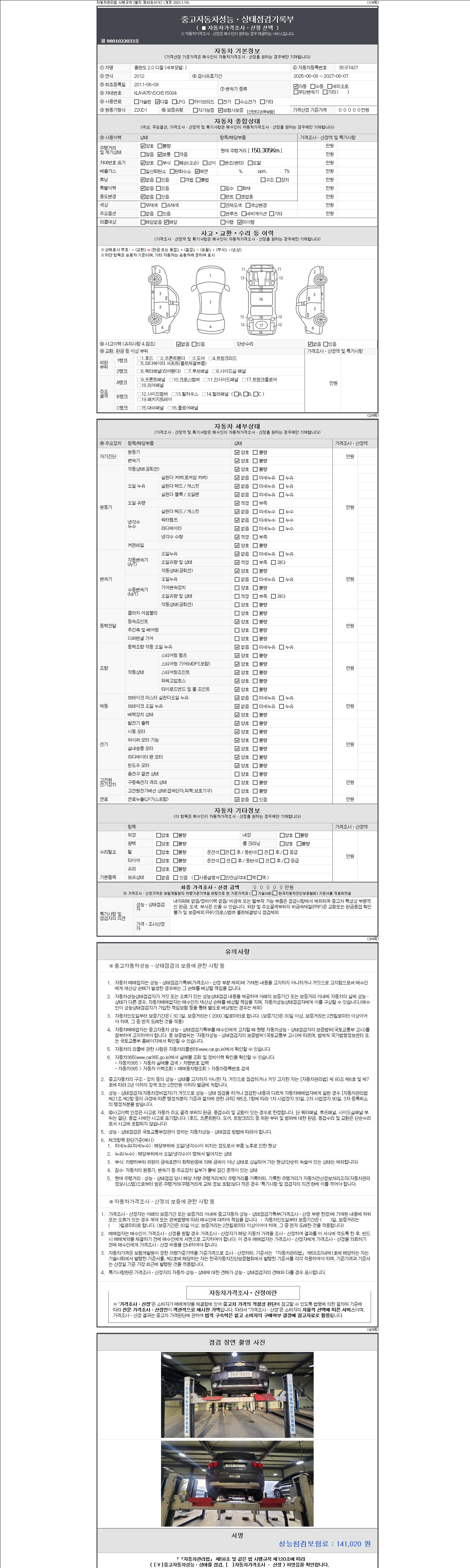 2. 차량 등록증이나 성능점검지 등을 상담자에게 요청및 확인하시고 사전에 미리 점검 하시기를 권유드립니다.
