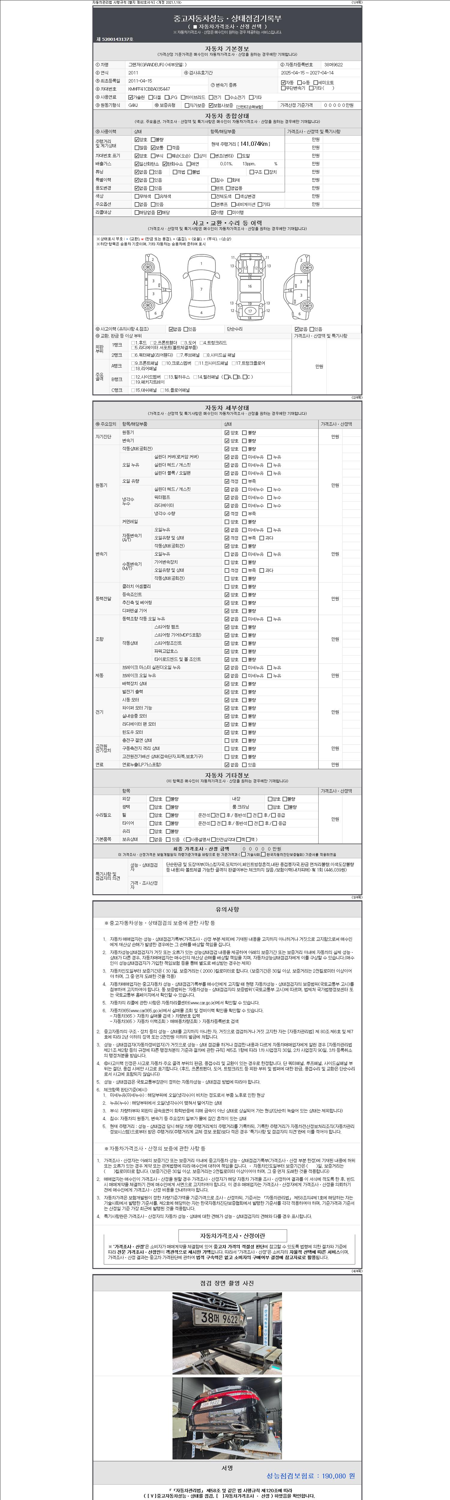 | 주행거리 | 141,074 km | 차량번호 | 38머9622 |