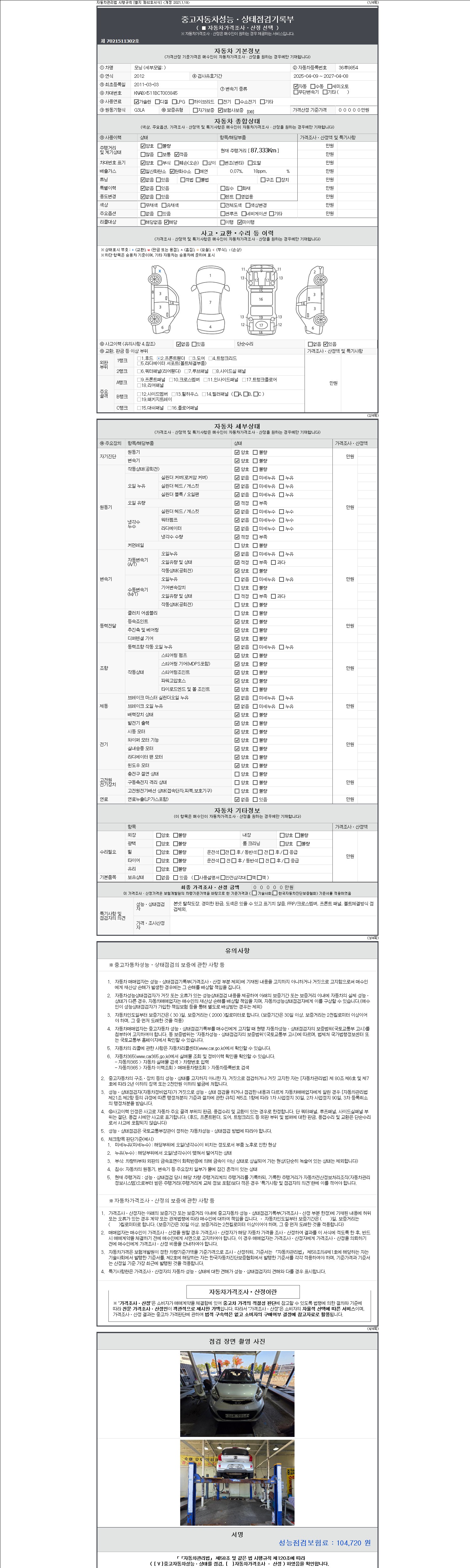 2. 차량 등록증이나 성능점검지 등을 상담자에게 요청및 확인하시고 사전에 미리 점검 하시기를 권유드립니다.