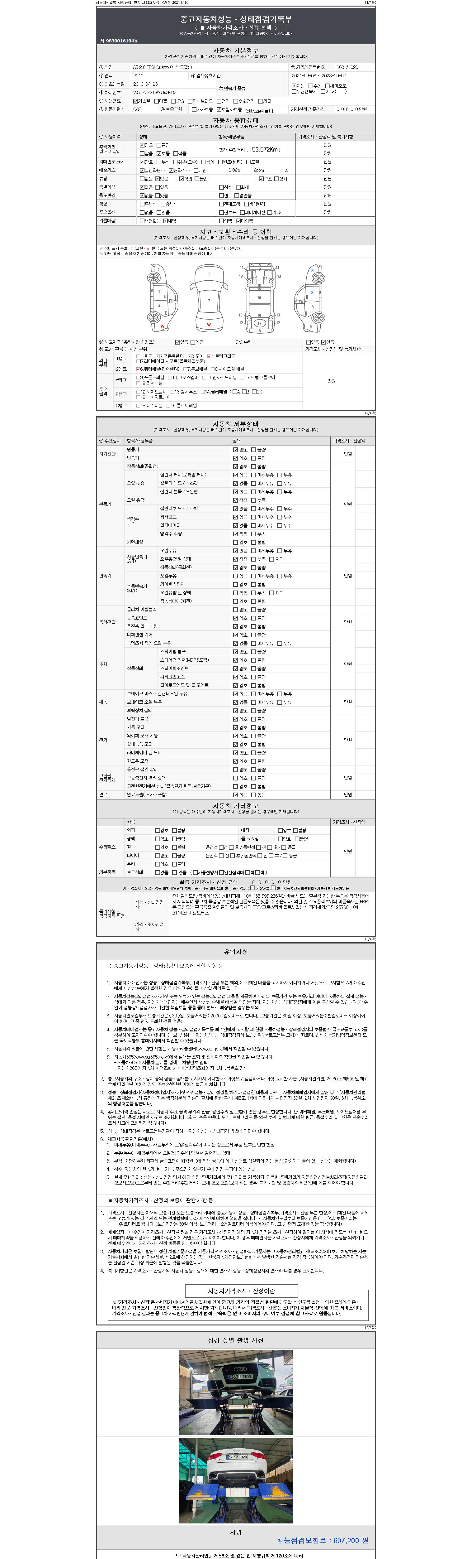 2. 차량 등록증이나 성능점검지 등을 상담자에게 요청및 확인하시고 사전에 미리 점검 하시기를 권유드립니다.