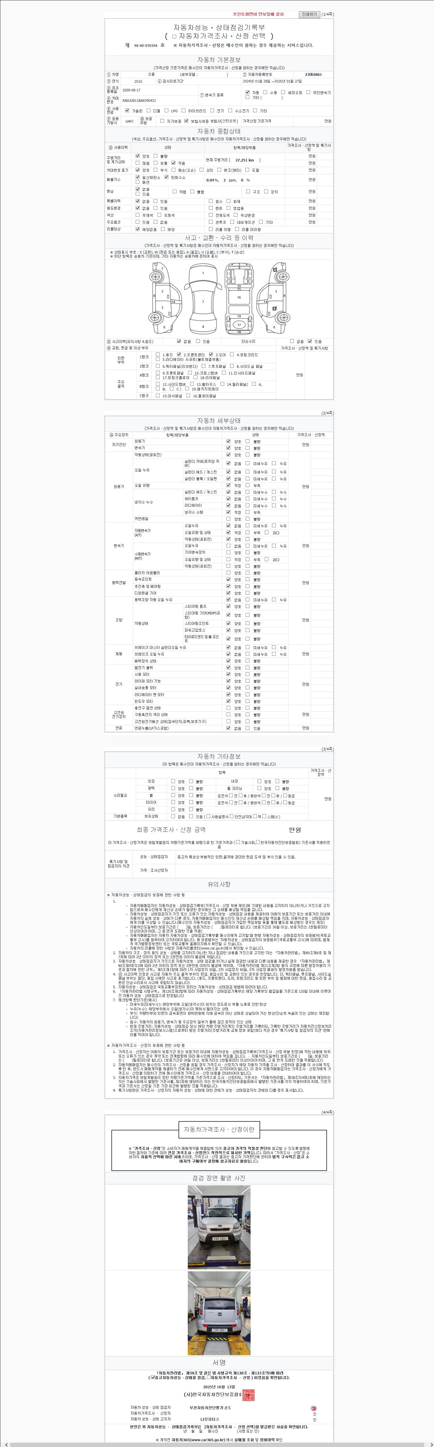 2. 차량 등록증이나 성능점검지 등을 상담자에게 요청및 확인하시고 사전에 미리 점검 하시기를 권유드립니다.