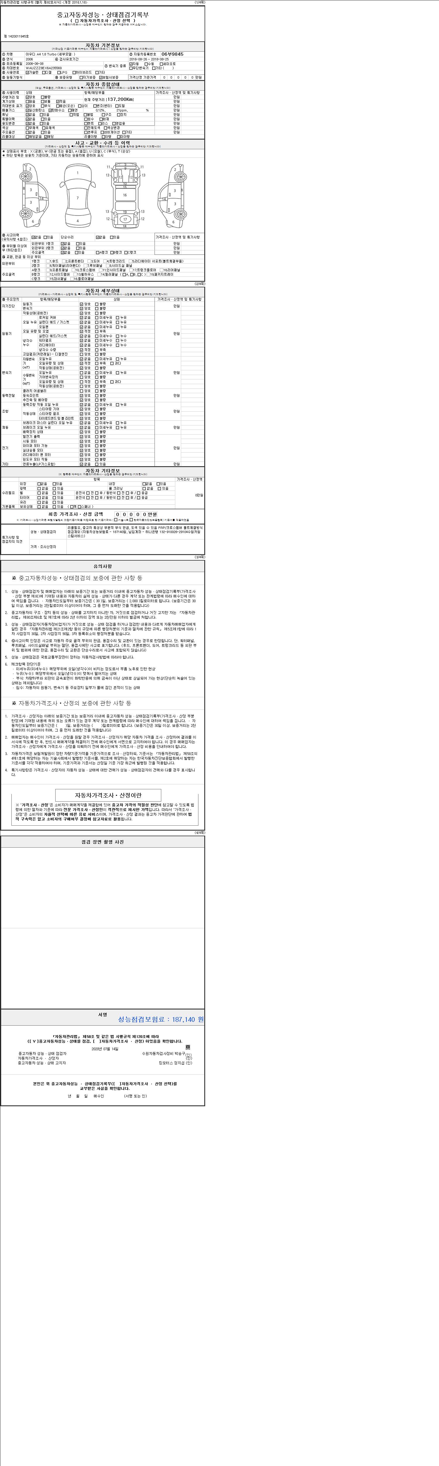 | 주행거리 | 137,200 km | 차량번호 | 06부9845 |