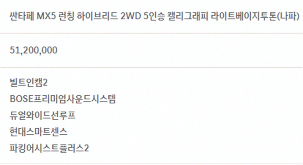 현대 싼타페 싼타페 하이브리드 MX5 (23년~) 1.6T 2WD 캘리그래피 |