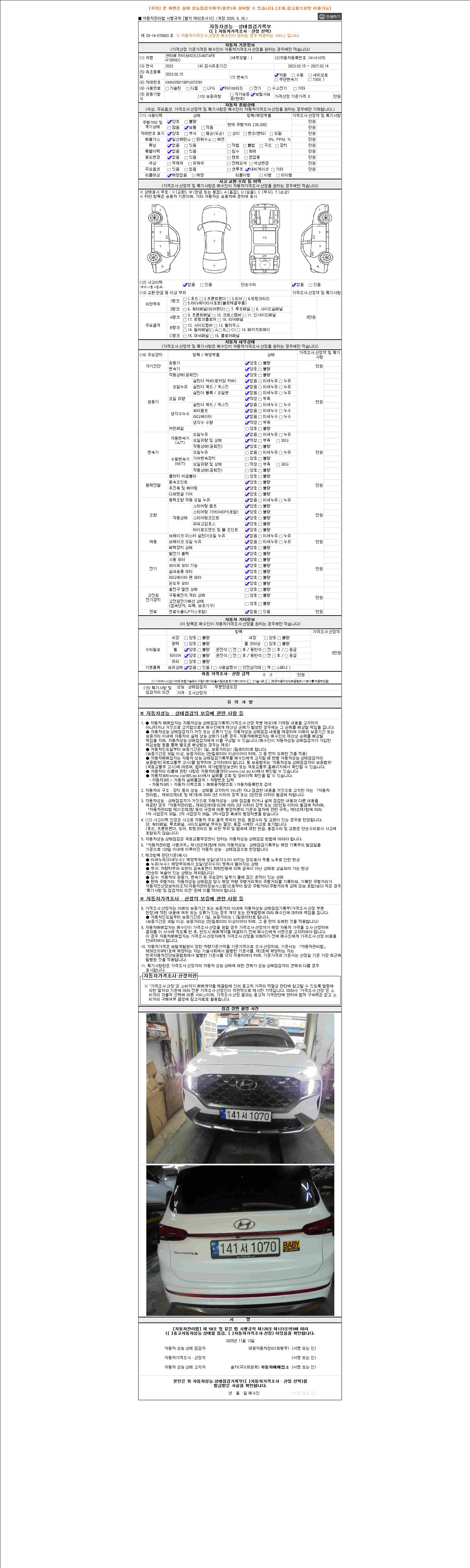 2. 차량 등록증이나 성능점검지 등을 상담자에게 요청및 확인하시고 사전에 미리 점검 하시기를 권유드립니다.