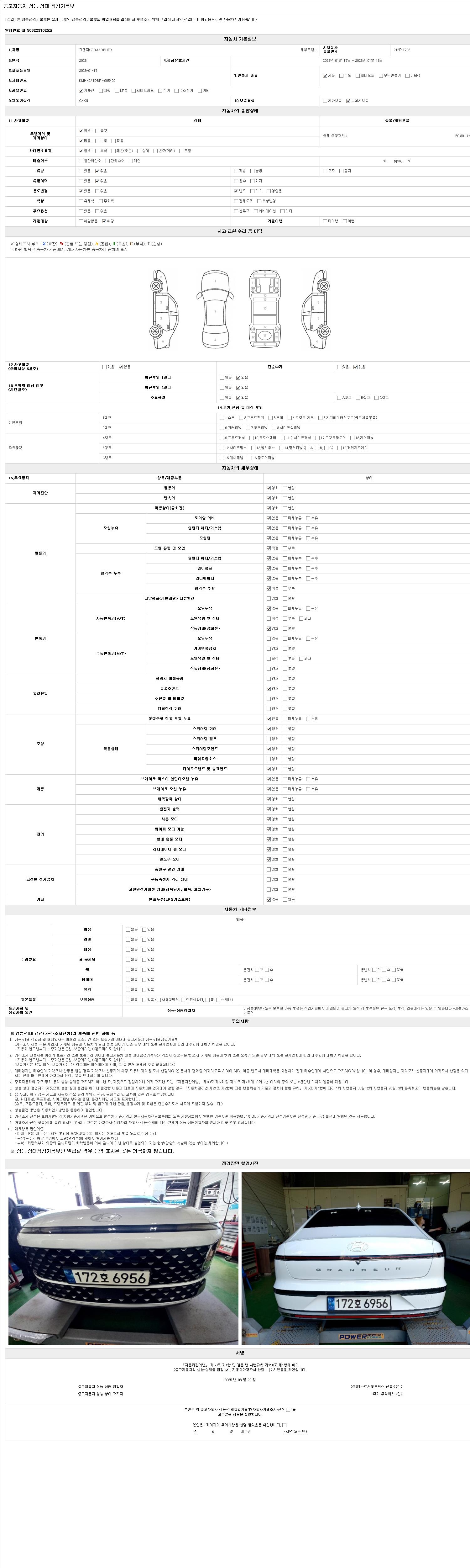 2. 차량 등록증이나 성능점검지 등을 상담자에게 요청및 확인하시고 사전에 미리 점검 하시기를 권유드립니다.