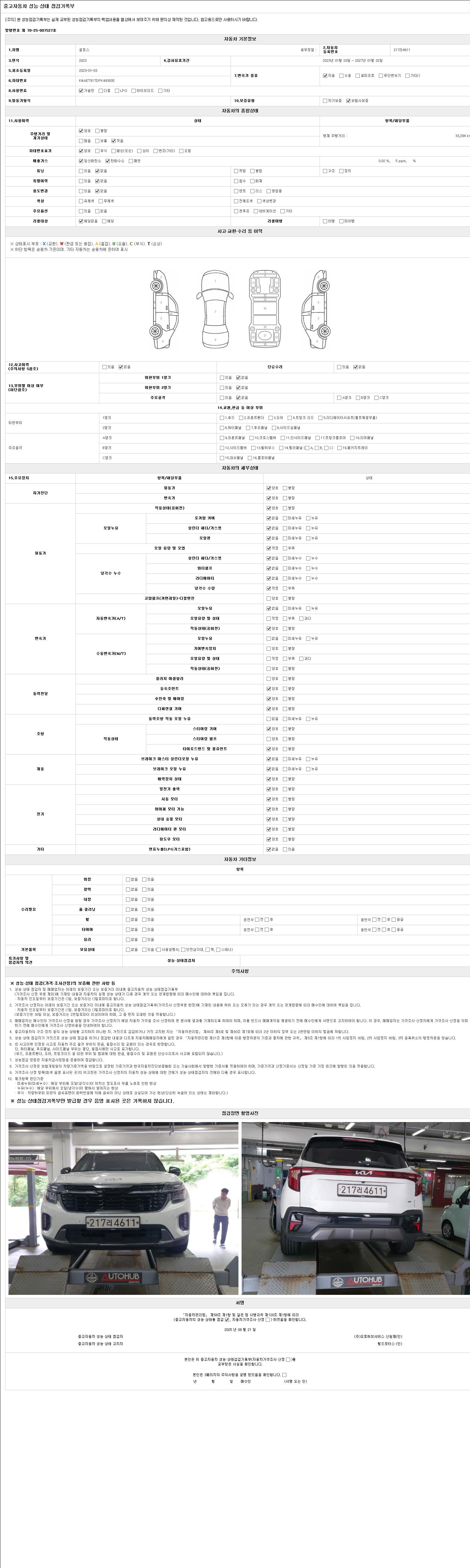 2. 차량 등록증이나 성능점검지 등을 상담자에게 요청및 확인하시고 사전에 미리 점검 하시기를 권유드립니다.