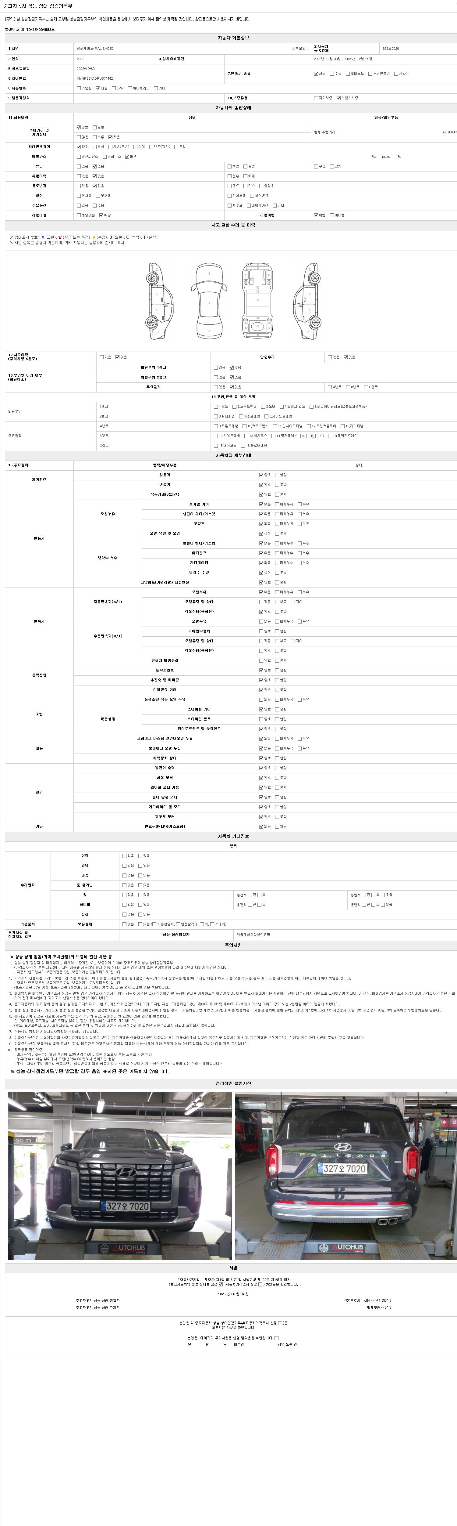 2. 차량 등록증이나 성능점검지 등을 상담자에게 요청및 확인하시고 사전에 미리 점검 하시기를 권유드립니다.